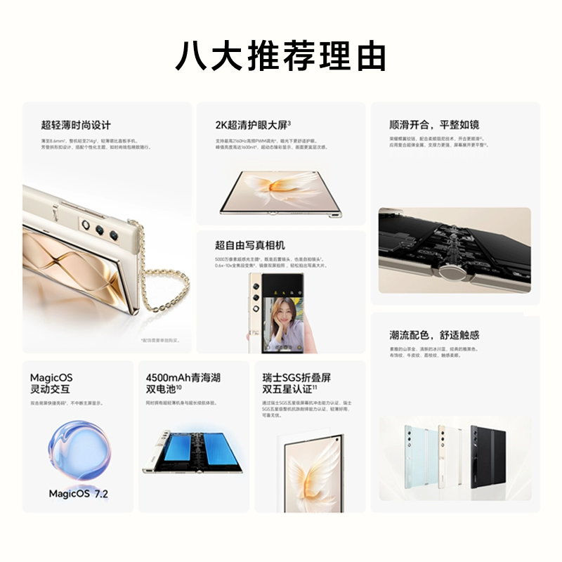 | nameOriginal | [Official website] Honor V Purse wallet folding screen 5G mobile phone 8.6mm ultra-thin and light 2K ultra-clear eye protection large screen ultra-free photo camera Qinghai Lake dual battery |