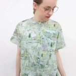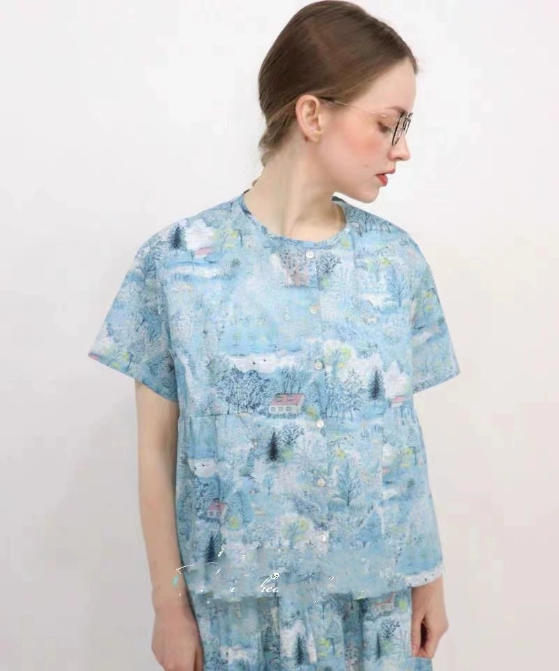 | nameOriginal | Official website ice silk ink painting short-sleeved shirt for women 2024 summer new sweet stand-up collar large size pure cotton thin shirt |