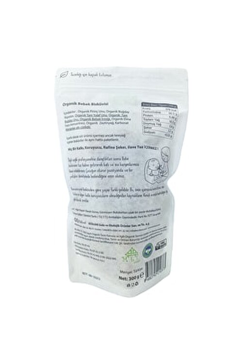 Organic Olive Oil Baby Biscuits 300 Gr +6 Months Product NameQuantity Organic Olive Oil Baby Biscuit 300 Gr +6 Ayx 2 ad. Organic Olive Oil Dairy Free Eggless Baby Biscuit with Olive Oil Baby Biscuit Contents: Organic Rice Flour, Organic Wheat Starch, Organic Whole Oat Flour, Organic Whole Wheat Flour, Organic Baby Semolina, Organic Apple Juice concentrate, Organic Olive Oil, Carbonate NOTE: Does not contain dairy products but contains butter Packed on the same line as biscuits. Energy Nutrient Sons (100 g) Energy (kcal) :378 Total Fat (g) :16,5 Saturated Fat (g) :5,8 Carbohydrates (g): 50,5 Sugar (g) :3.2 Protein (g): 6,86 Sodium (g): 0.03 Information: Recommended Consumption Date shown on the photo, belongs to the photographed urine. This item you ordered will be shipped with a current consumption date.