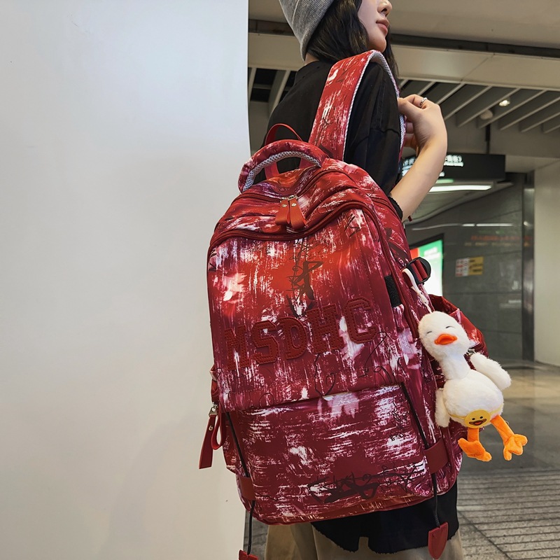 Ohan New High-value Large-capacity Backpack Women's Junior Senior high school Student Schoolbag Fashion Graffiti Casual Backpack Trendy