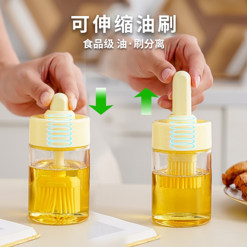 Oil Brush Bottle Kitchen Special Brush Silicone Brush Retractable Oil Brush Glass Integrated Food Grade Baking Brush