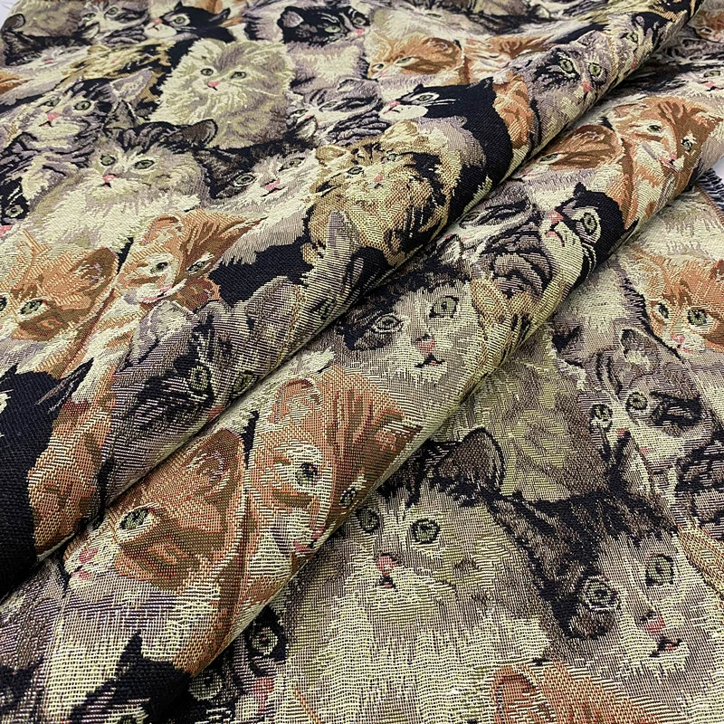 | nameOriginal | Oil painting jacquard fabric 3D cat animal pattern handmade diy material bag skirt jacket designer fabric |