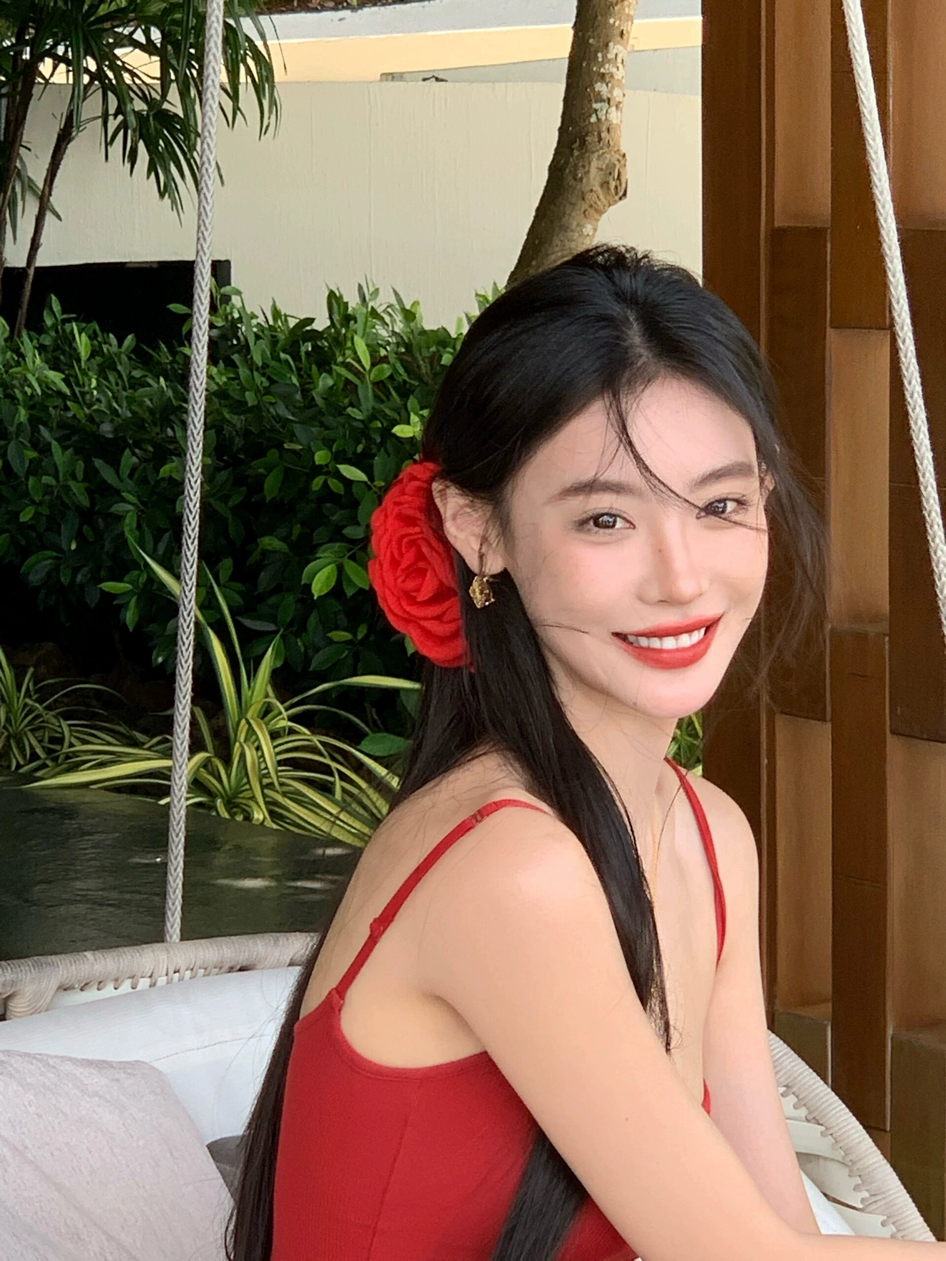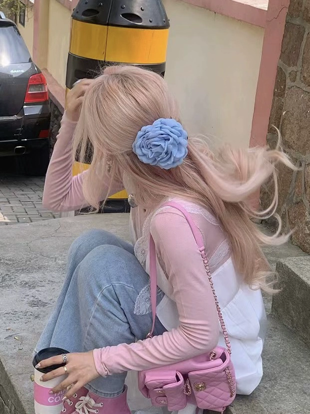 | nameOriginal | Oil painting rose flower hairpin peach tea on back of head |