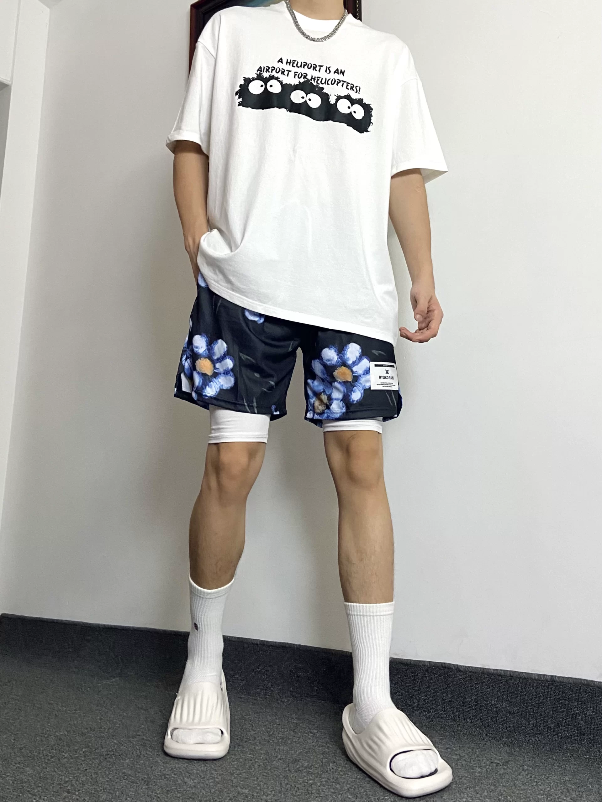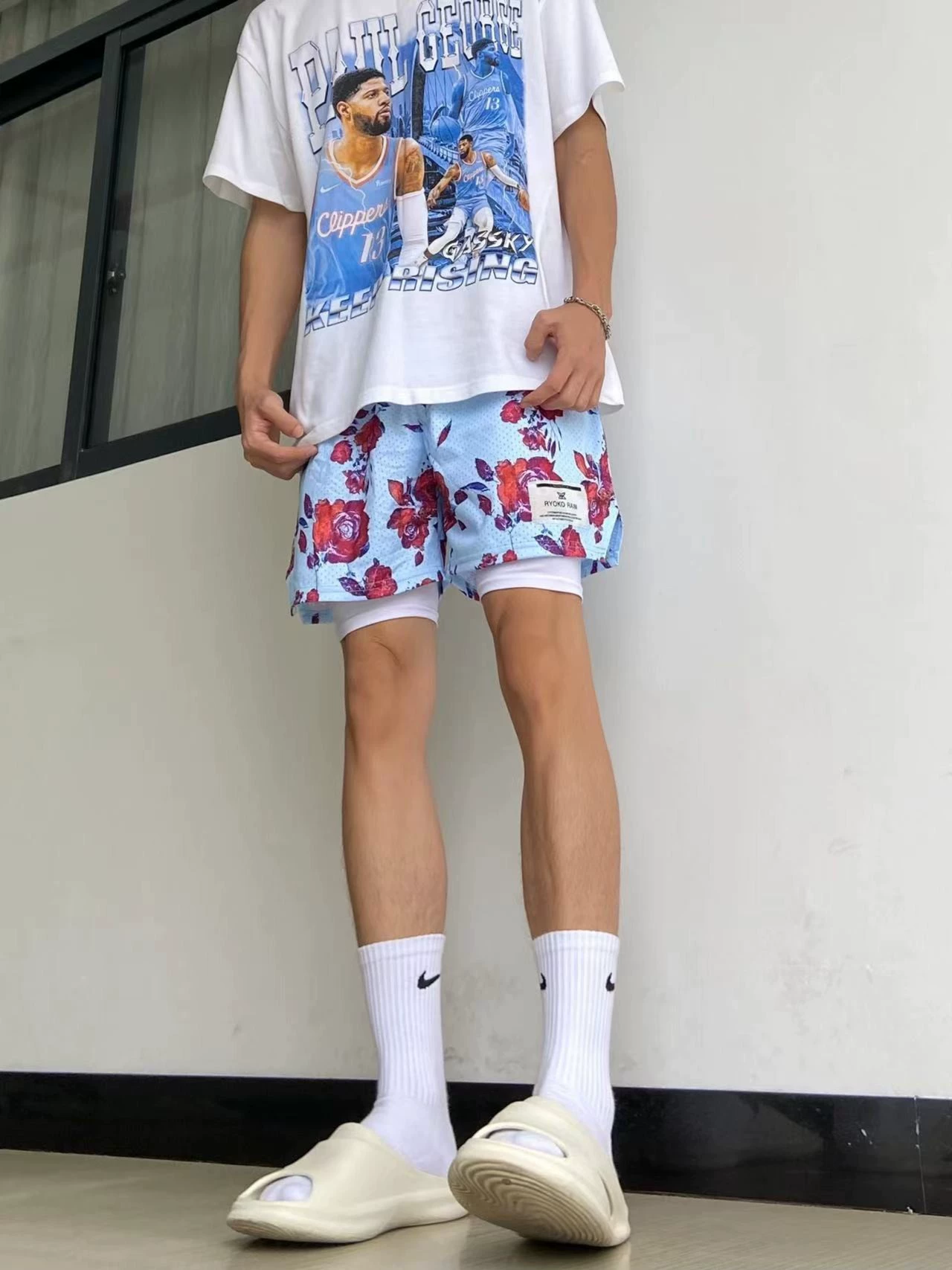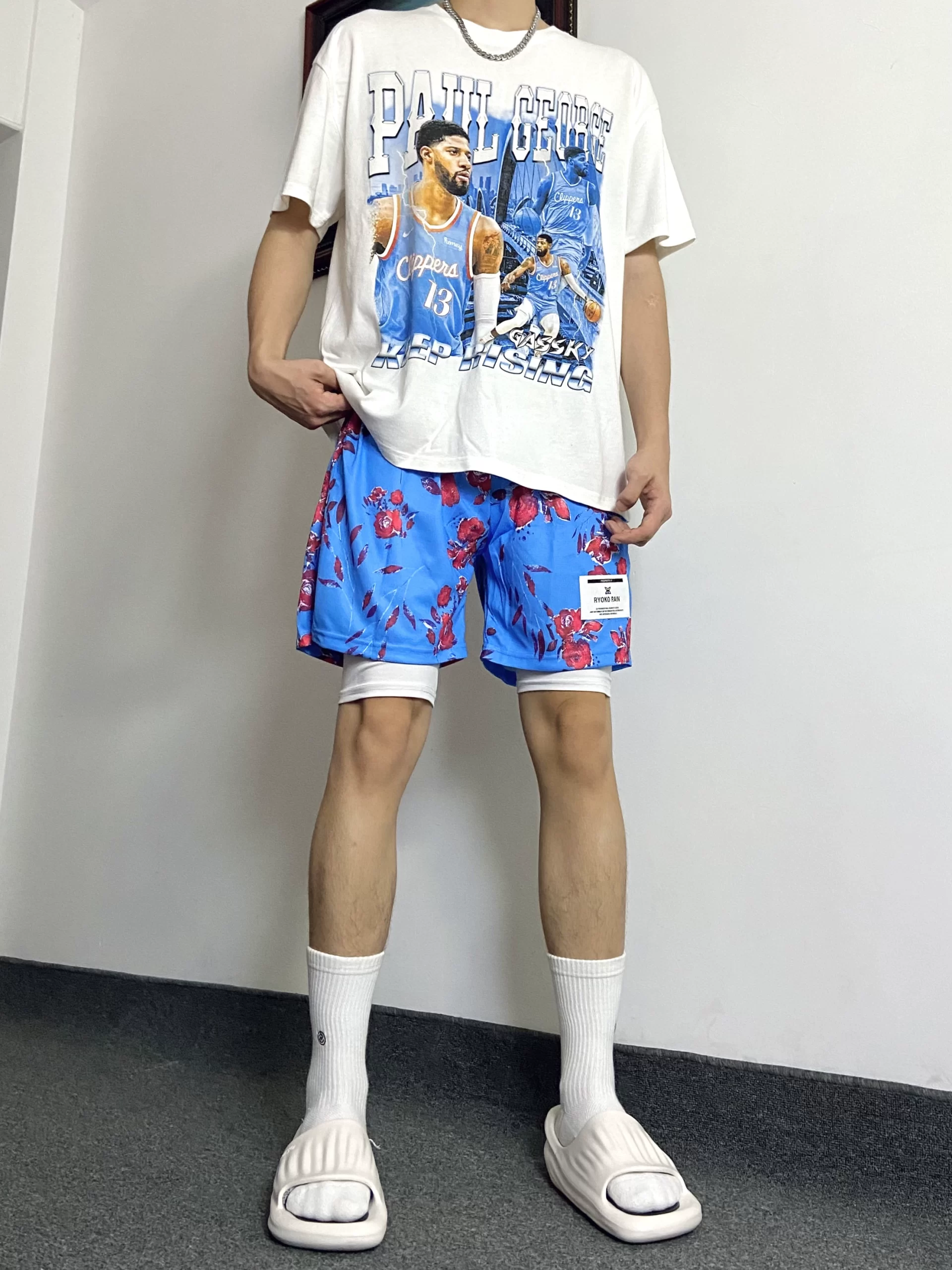 Oil painting wind but knee -eyed mesh men and women basketball quarter pants