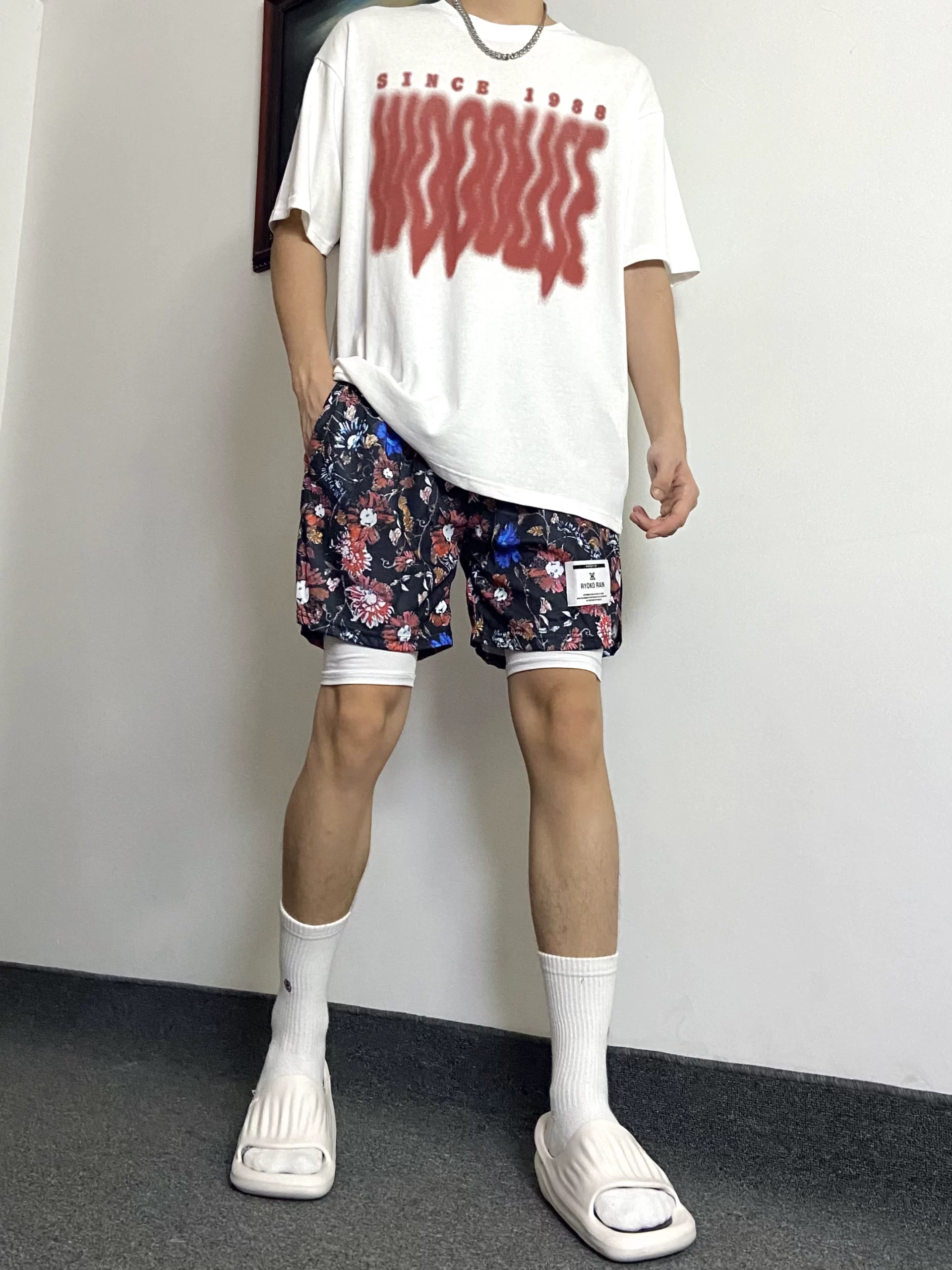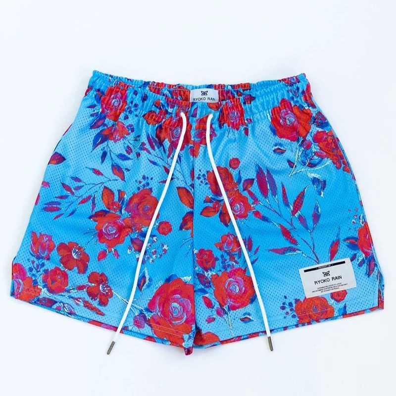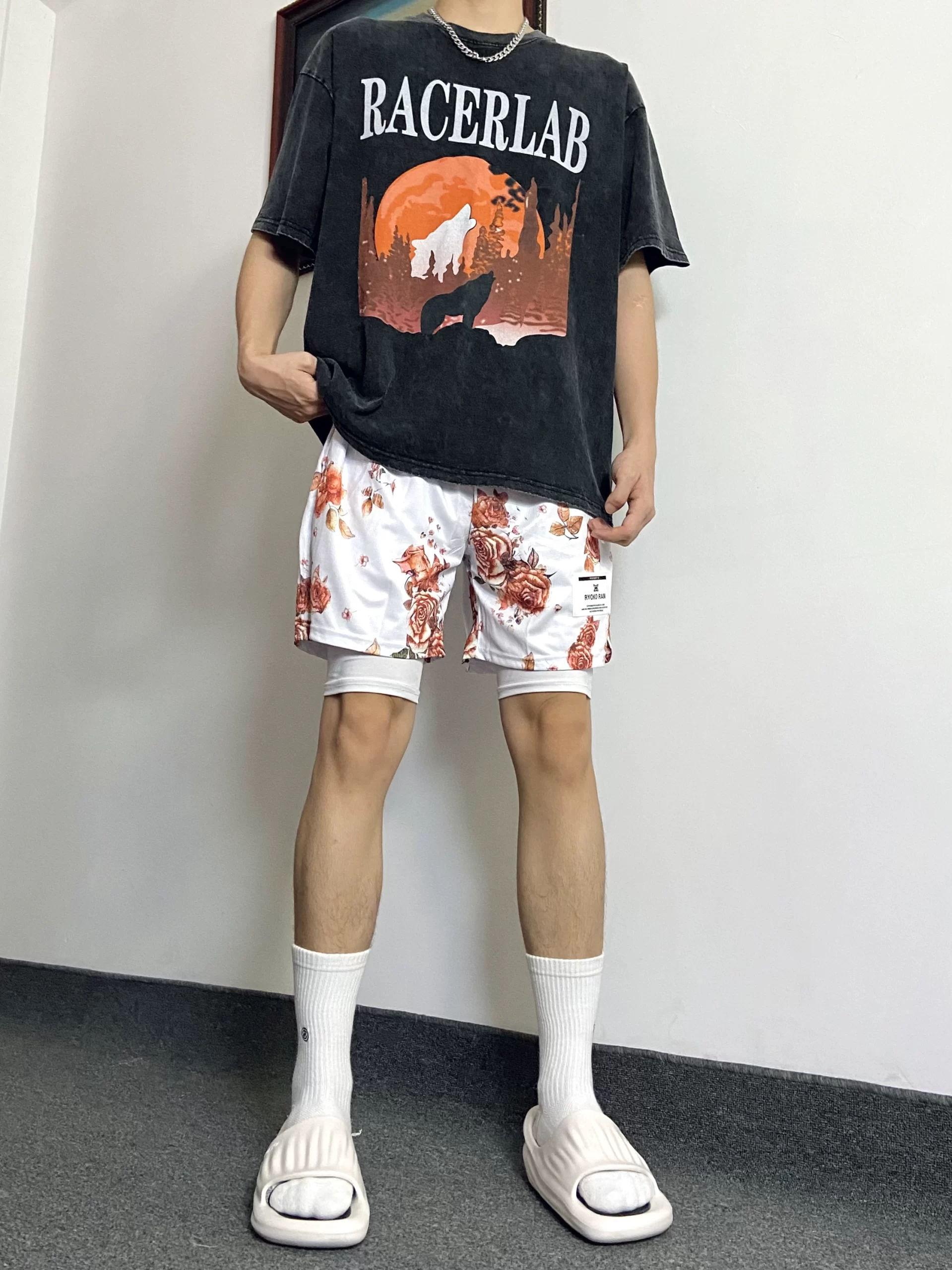 Oil painting wind but knee -eyed mesh men and women basketball quarter pants
