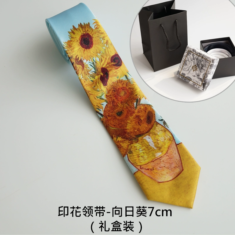 | nameOriginal | Oil painting sunflower van gogh inspirational light blue ins tie |