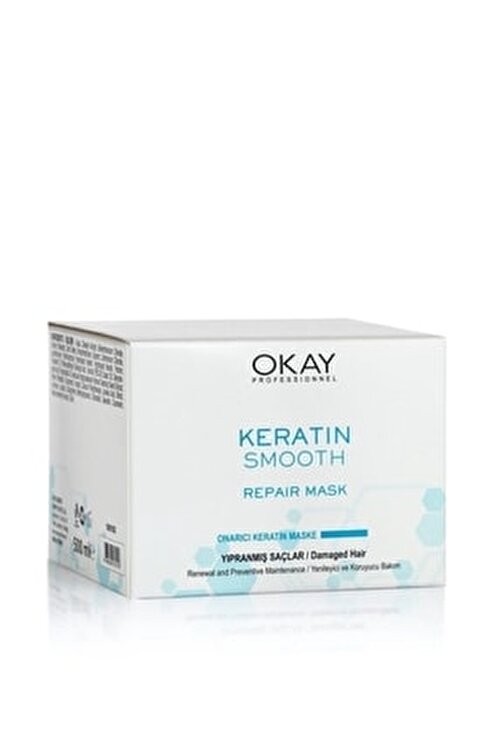 Okay Keratin Smooth Restorative Hair Mask 500 mlProvides excellent smoothing on hair. Helps maintain moisture in the hair. Silky gives softness and shine. With keratin in its contents, it restores the hair and ensures a healthy appearance. Usage: Distribute the product evenly on your hair. Eat the hair with light massage. Wrap in a warm towel and wait 5 min. Rinse with water.