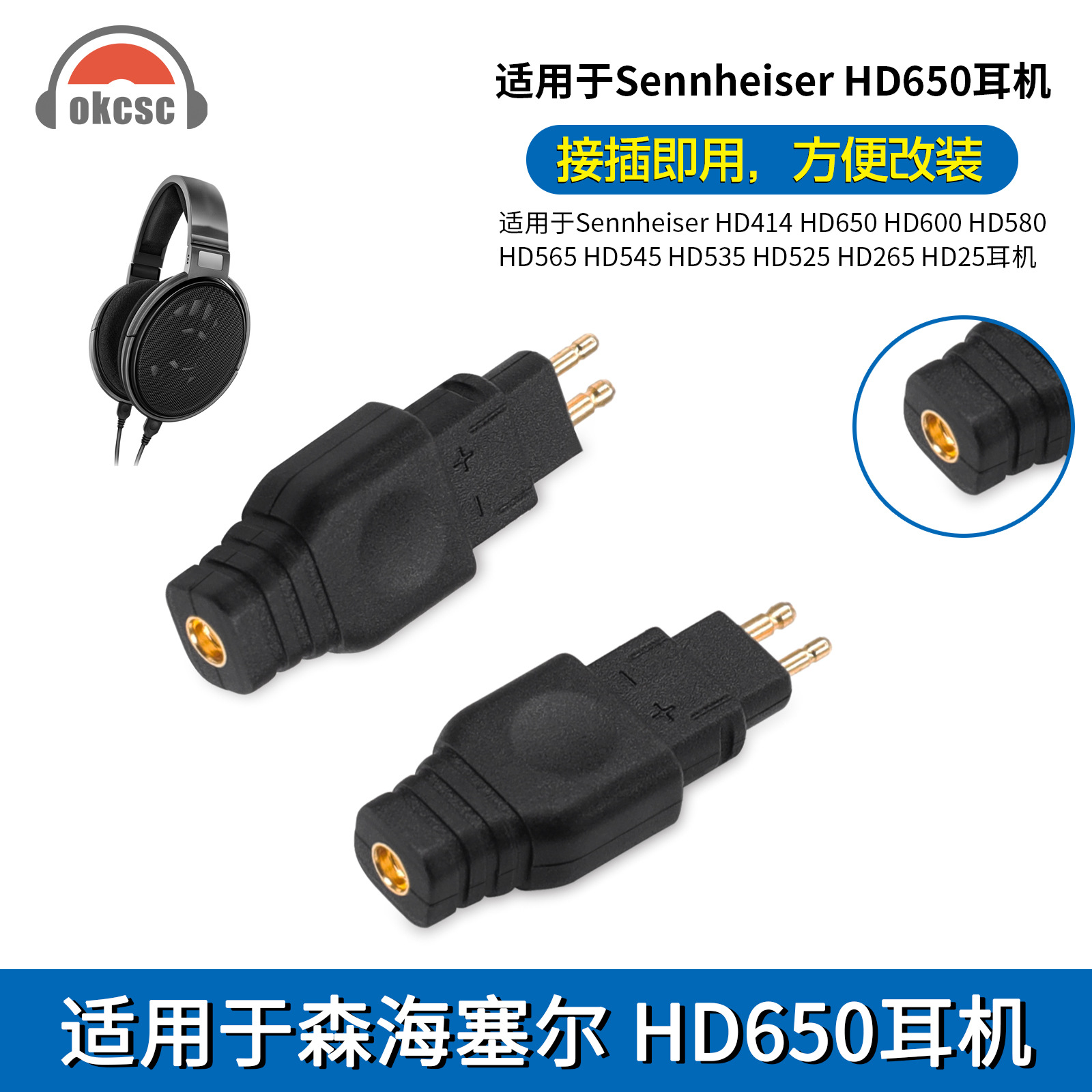 okcsc headset conversion plug HD660SHD25HD580 to 0.78mm/mmcx female pin conversion