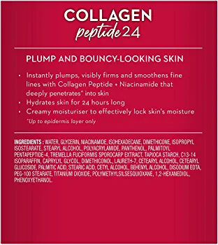 | descriptionOriginal | Olay Regenerist Collagen Peptide 24 Face Cream Did you know that Collagen is an essential component supporting your skin’s structure? With age, the amount of collagen in skin decreases, allowing the skin to show signs of fatigue. Olay’s Collagen Peptide 24 day cream is infused with Collagen Peptides unlike collagen molecules, are able to penetrate up to 10 layers deep into skin surface. Together with Vitamin B3, the formula works fast to boost your skin with intense hydration that lasts for 24 hours and works over time to smooth your skin’s texture & restore its protective barrier, for strong and glowing skin. Olay Collagen Peptide24 day cream reveal strong and glowing skin in 14 days.  |