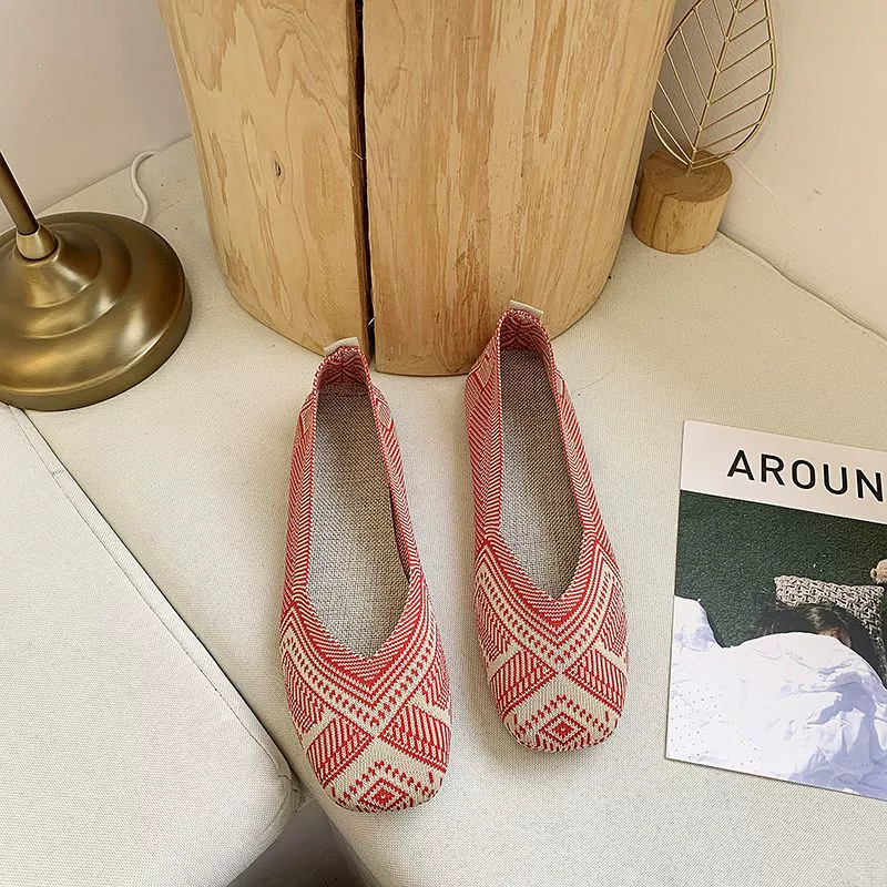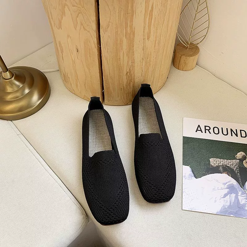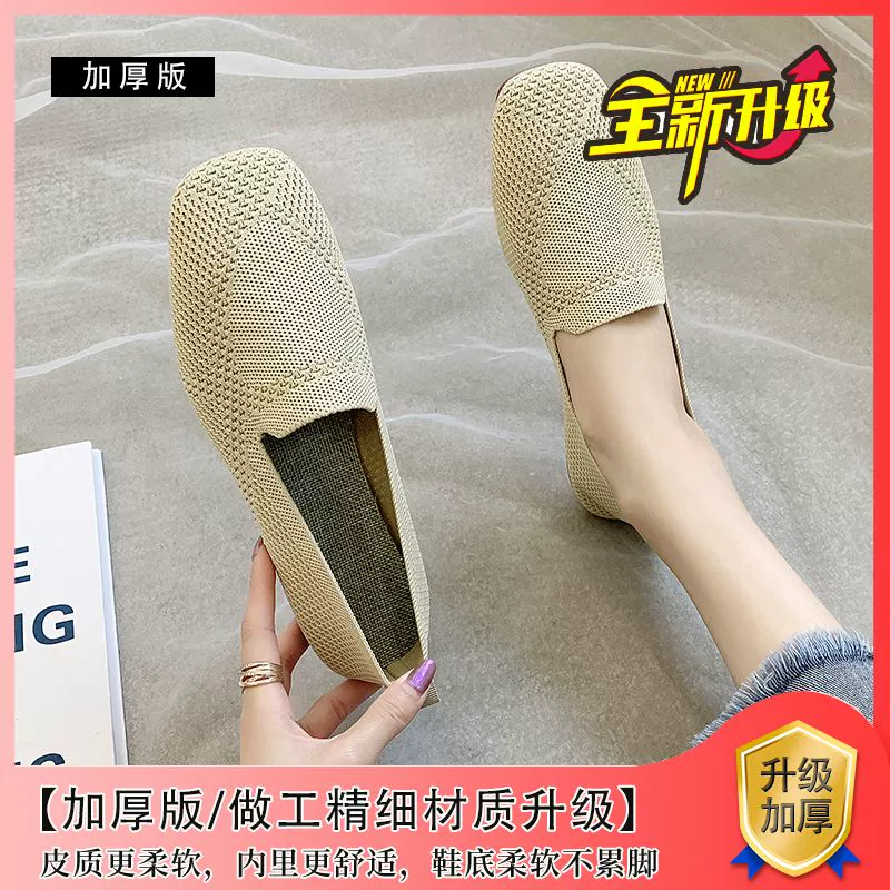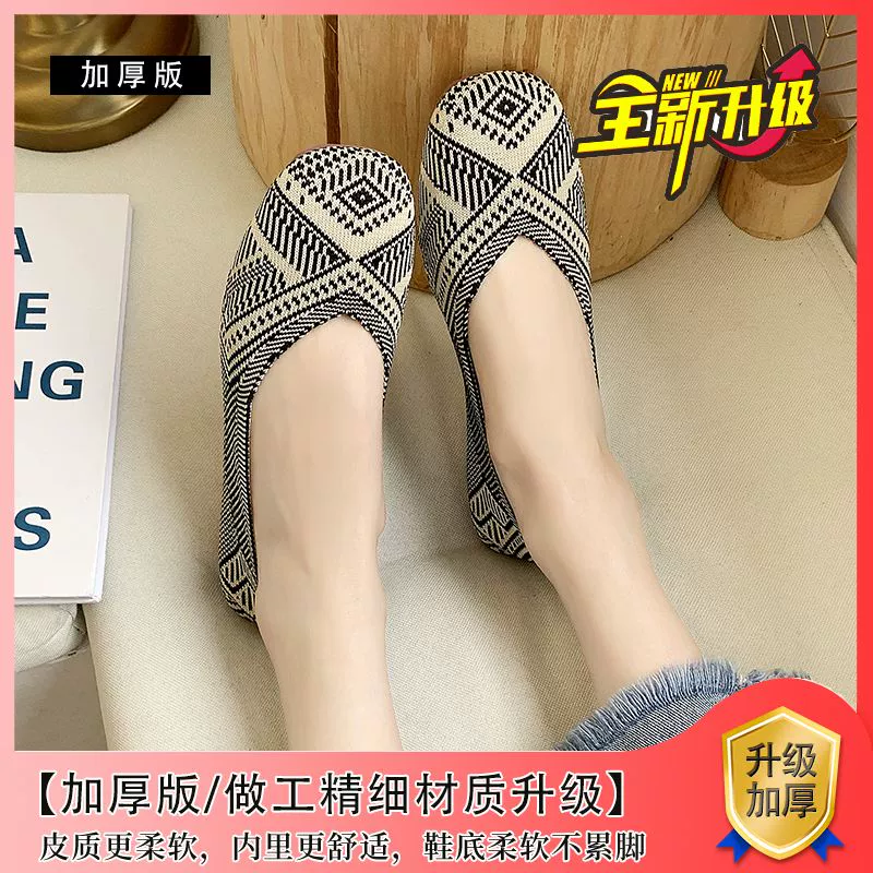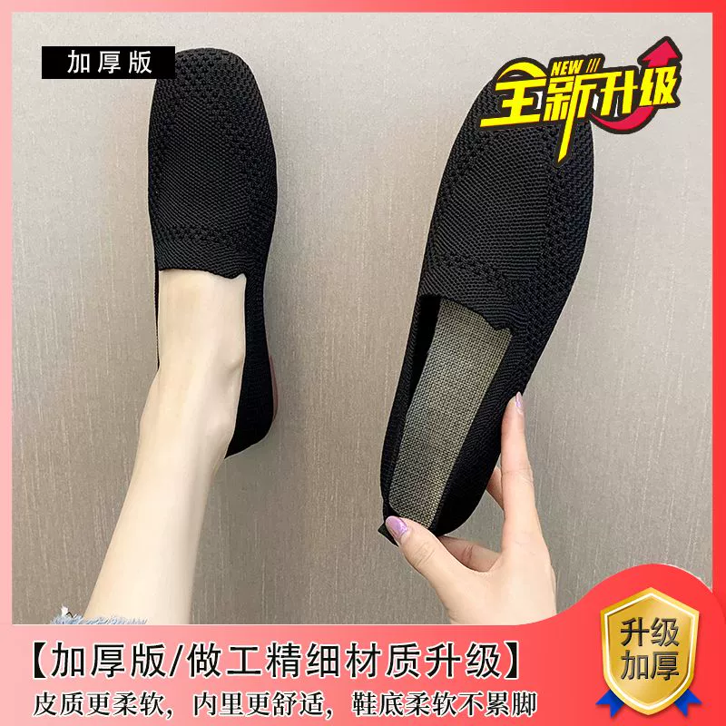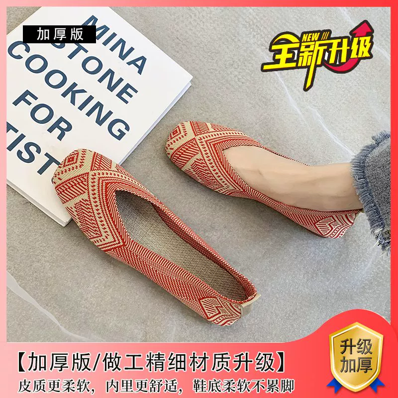 Old Beijing cloth shoes women's large size single shoes ins trend 2024 spring and autumn new square toe flying weaving bean shoes flat bottom versatile