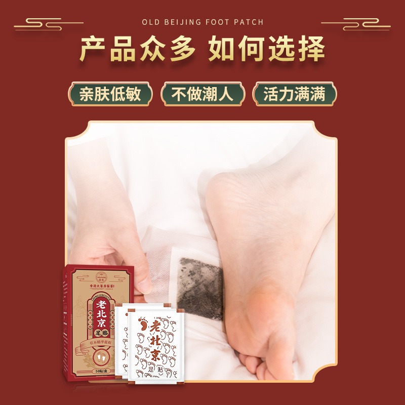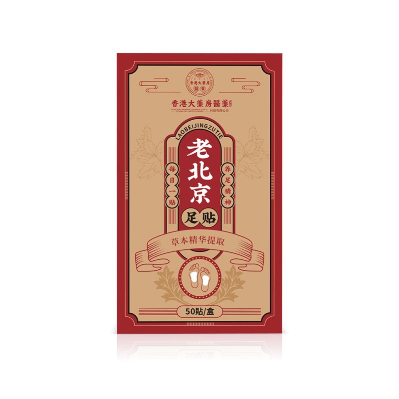 | nameOriginal | Old Beijing foot patch Hong Kong pharmacy 50 stickers boxed foot care wormwood leaf fever dehumidifying Wormwood foot patch |