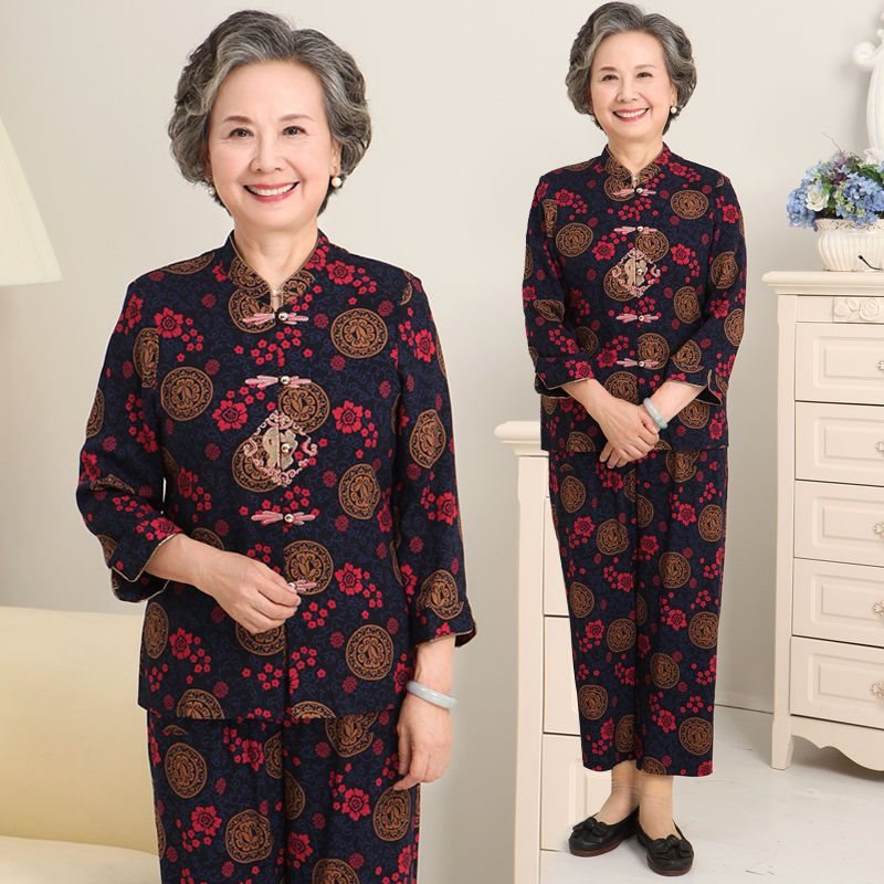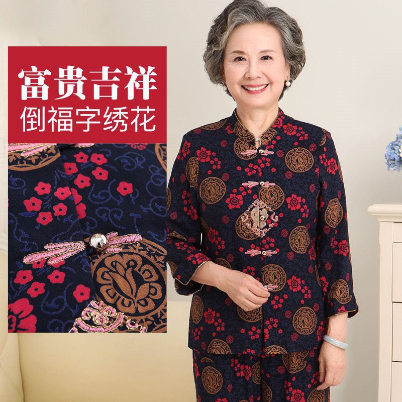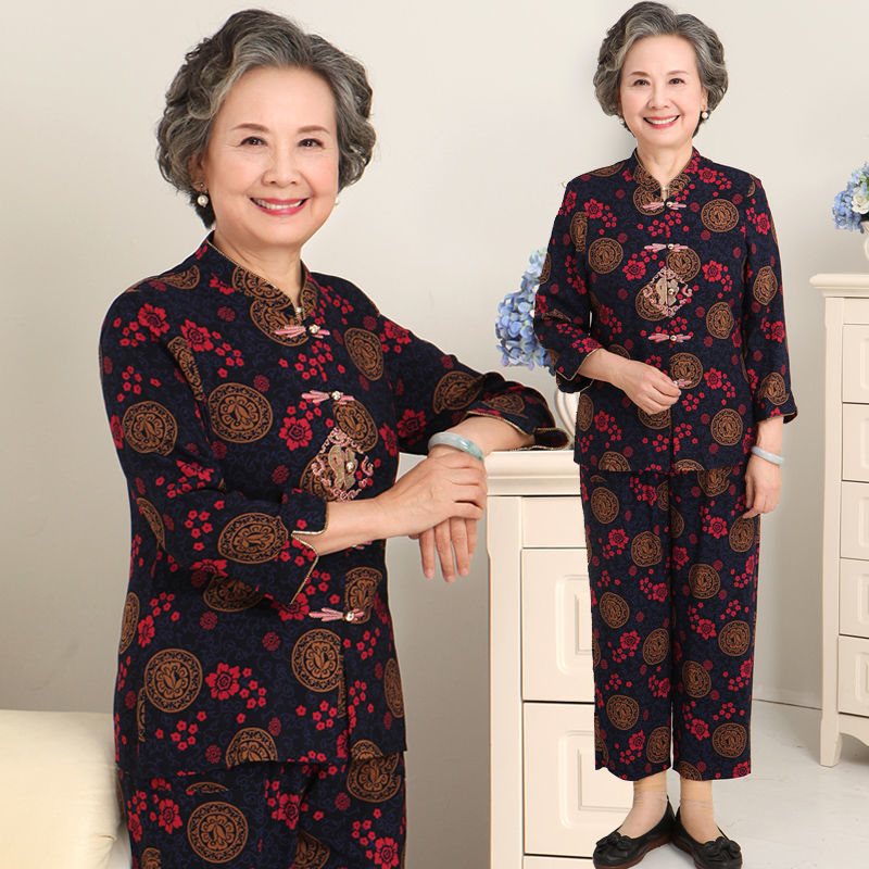 | nameOriginal | Old Lady's Birthday Festive Clothes Middle-aged and Elderly Women's Middle-sleeved Tang Suit Shirt Pants 70-year-old Grandma's Summer suit |