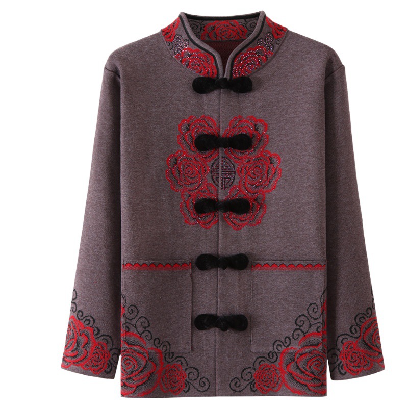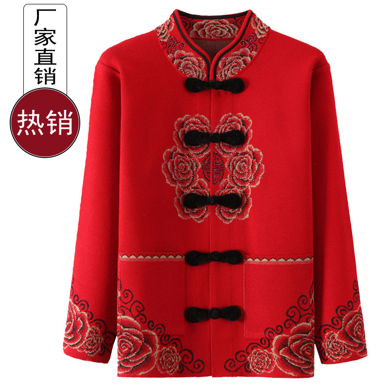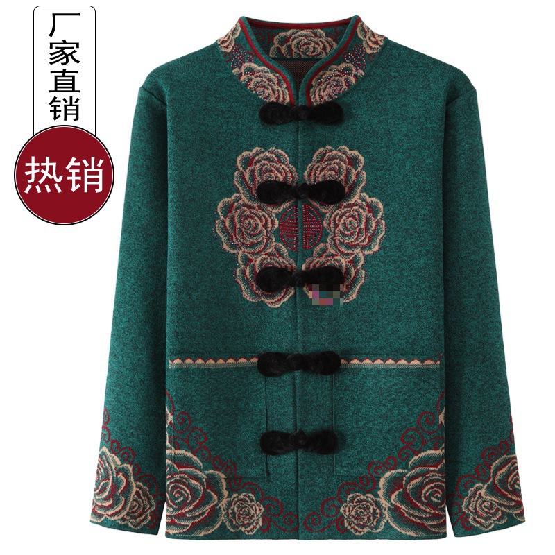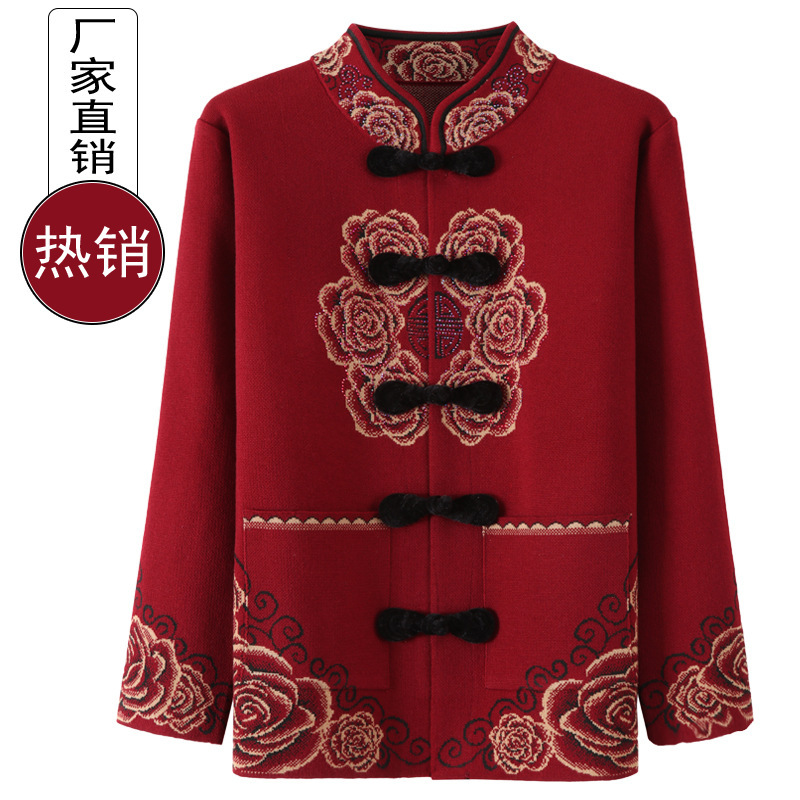 Old Lady’s Coat Spring and Autumn Clothes Female Elderly Grandma’s Coat Spring Clothes Tang Clothes Too Old Clothes Mother’s Knitted Sweater Sweater