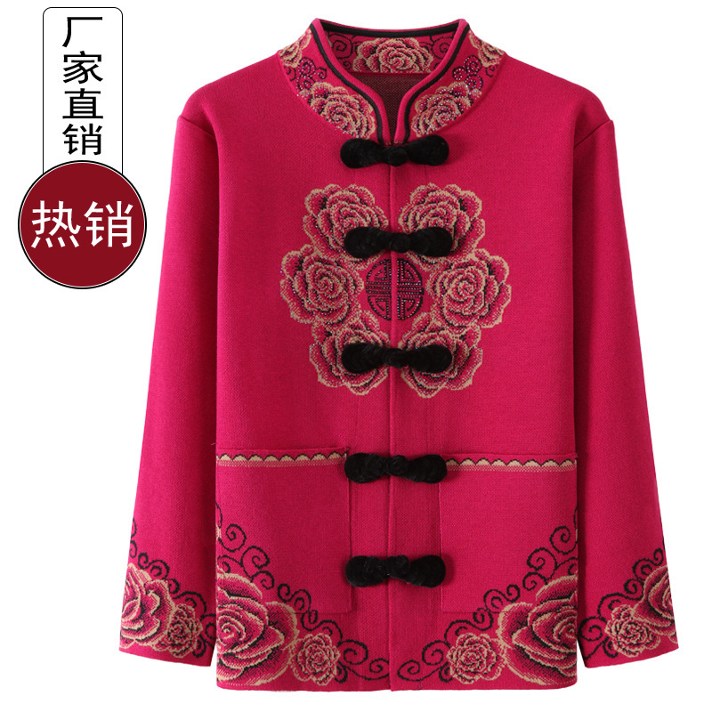 Old Lady's Coat Spring and Autumn Clothes Female Elderly Grandma's Coat Spring Clothes Tang Clothes Too Old Clothes Mother's Knitted Sweater Sweater