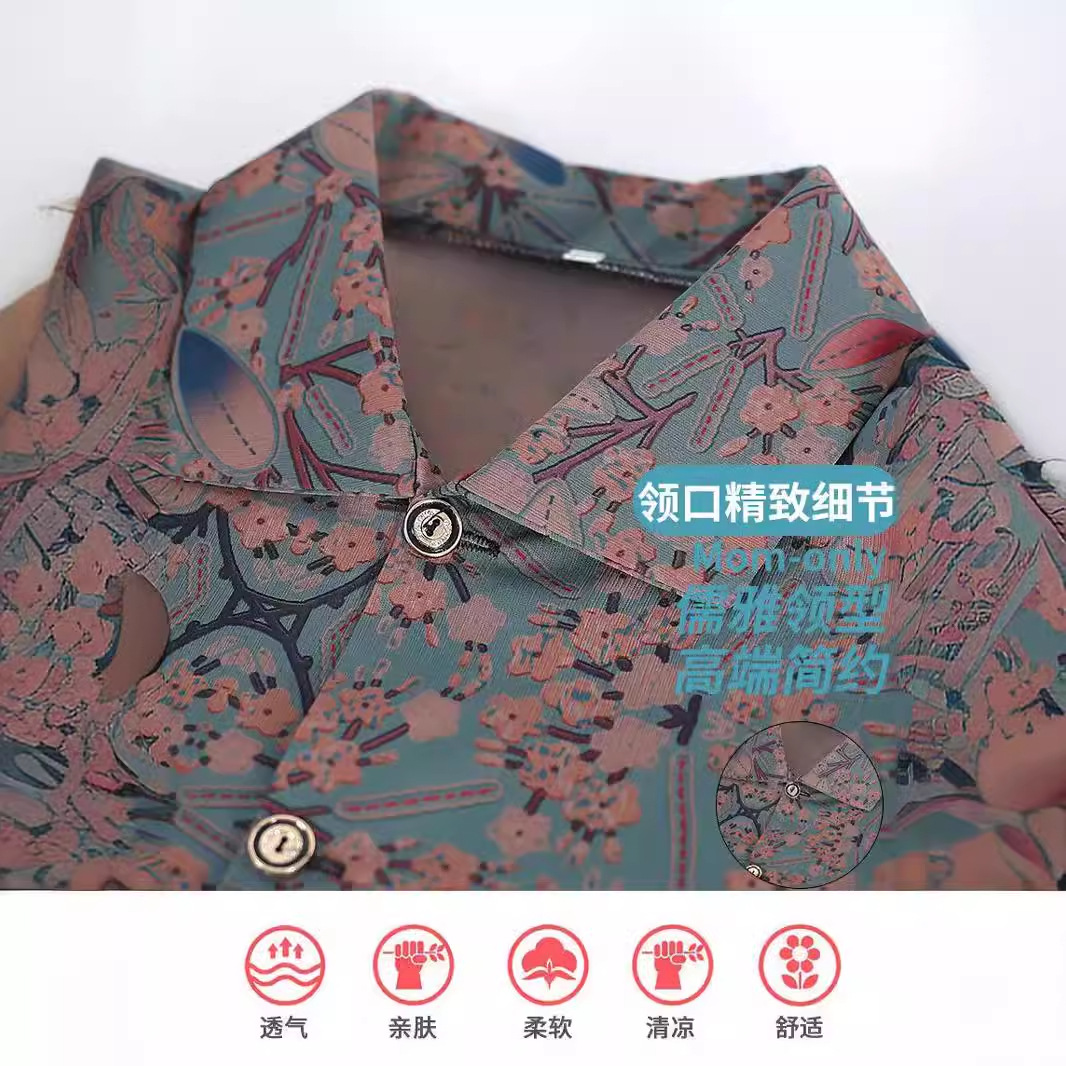 | nameOriginal | Old Lady's Seven-point Sleeve Top Old Man's Clothes Grandma's Summer Dress Shirt Female Mother's Summer suit |