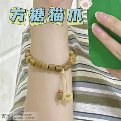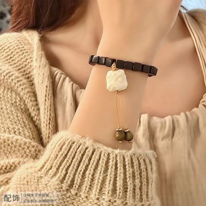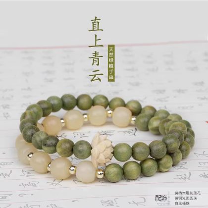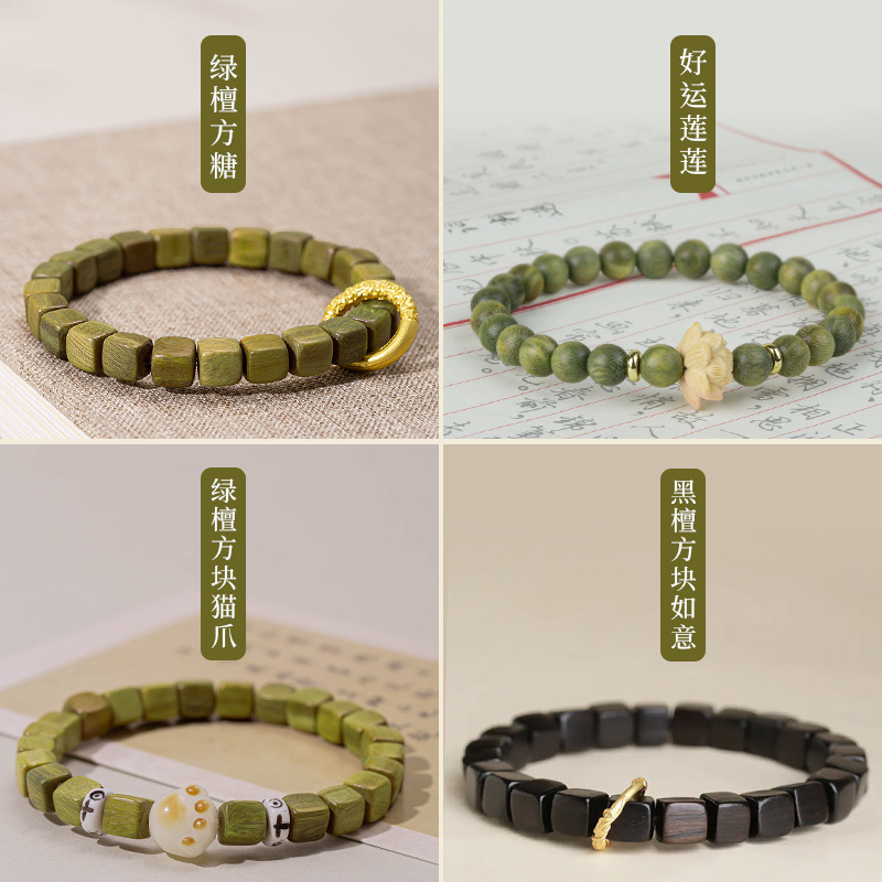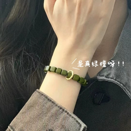 Old Material Green Sandalwood Bracelet Ebony Women’s Student Sandalwood Bracelet Wen Play Li Lianhua Bracelet Peripheral Jewelry