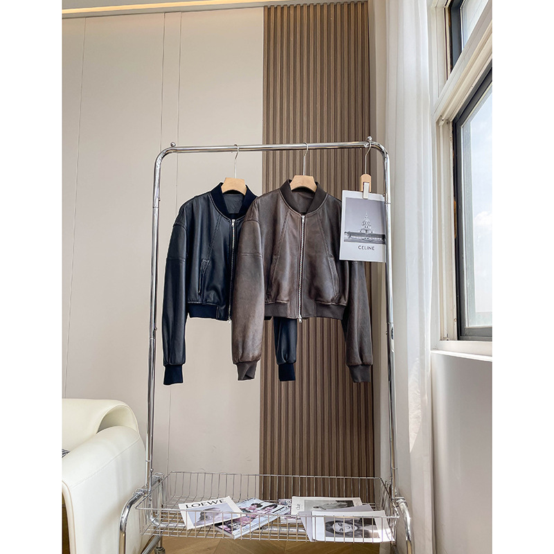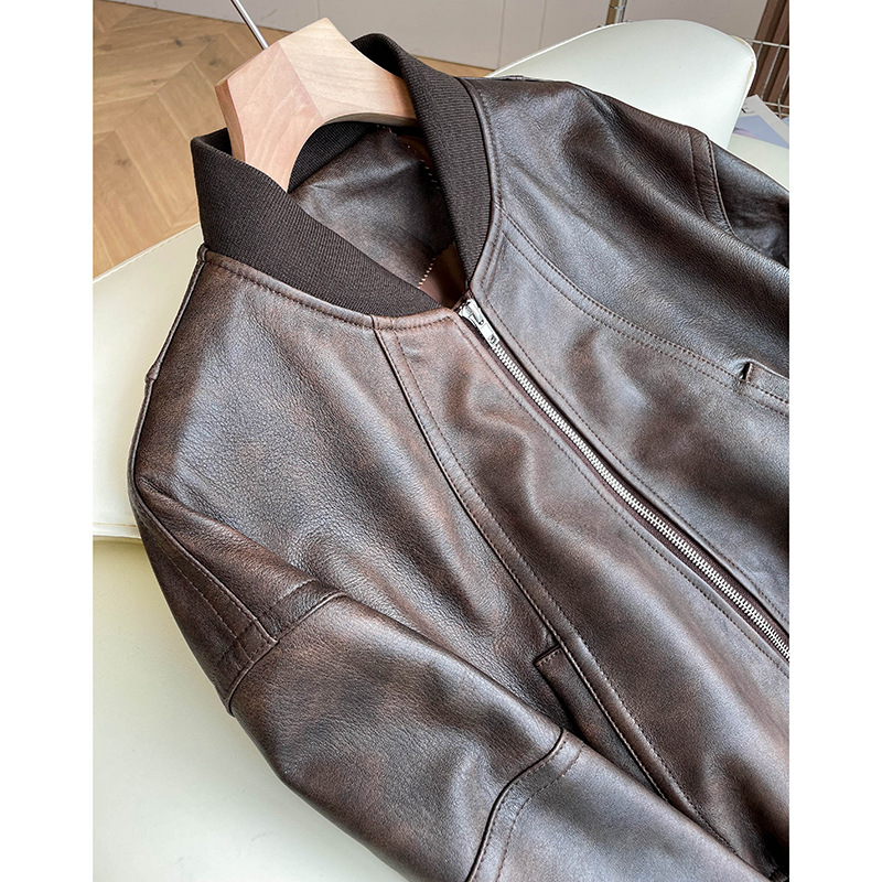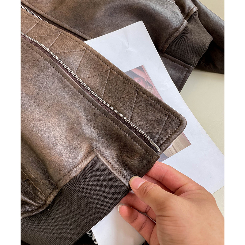 | nameOriginal | [Old money real leather coat] Vintage full plant sheepskin leather baseball JIN mouth High goods leather coat New |