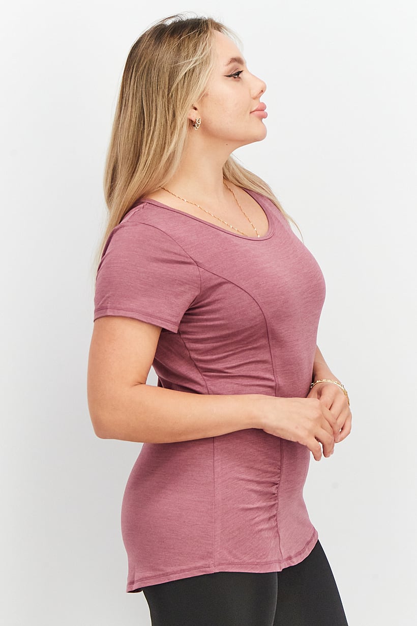 | nameOriginal | Women Round Neck Short Sleeve Solid Top, Old Rose |