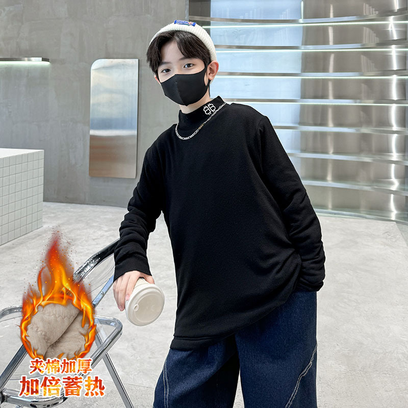 | nameOriginal | Older boys and children Winter quilted fleece-lined sweater cotton and thickening three-layer warm turtleneck top bottoming shirt |