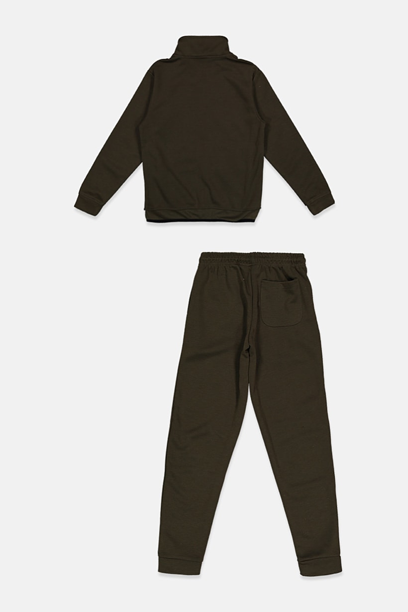 | descriptionOriginal | Care : Machine washable, Ideal For : Boys, Sleeve Length : Long Sleeve, Type of Sport : Training, Types of Neckline & Collar : High neckline, Fabrics : 100% Polyester, Occasion : Casual, Pattern & Print : Brand Logo, Sportswear Type : Tracksuits, Color Family : Olive, |