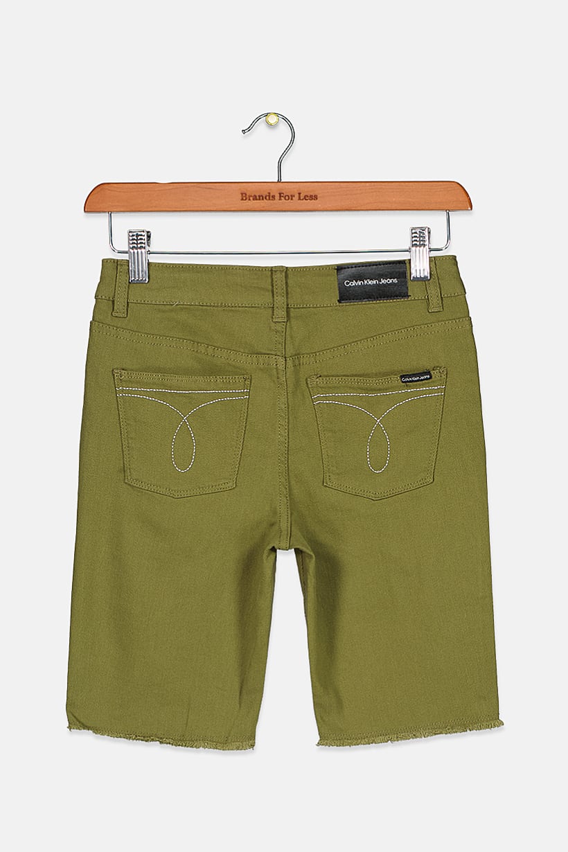 | nameOriginal | Kids Girl Fringe Hem Five Pocket Style Bermuda Short, Olive |