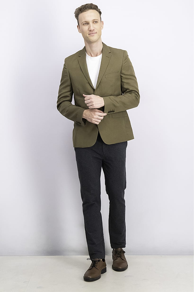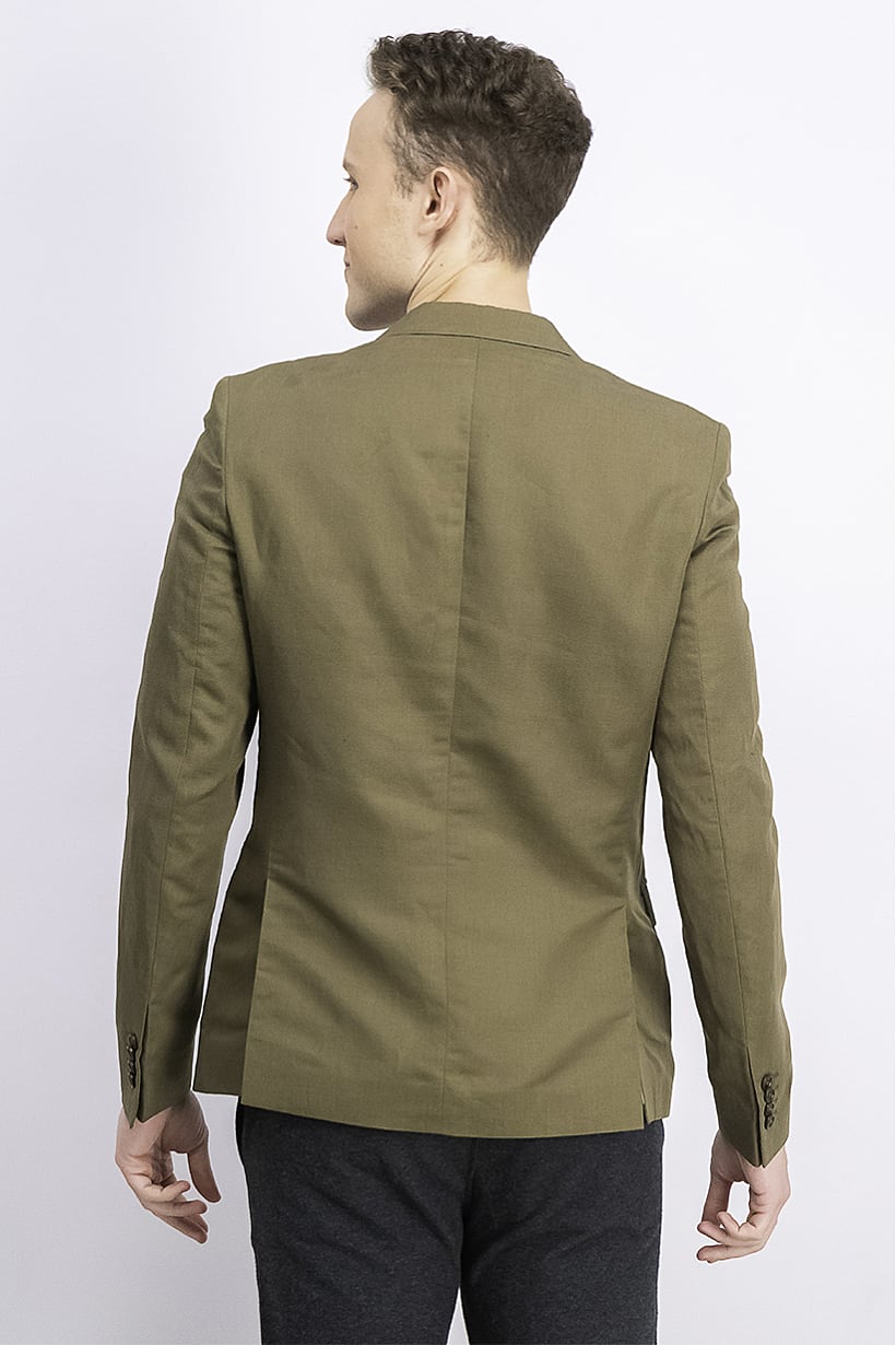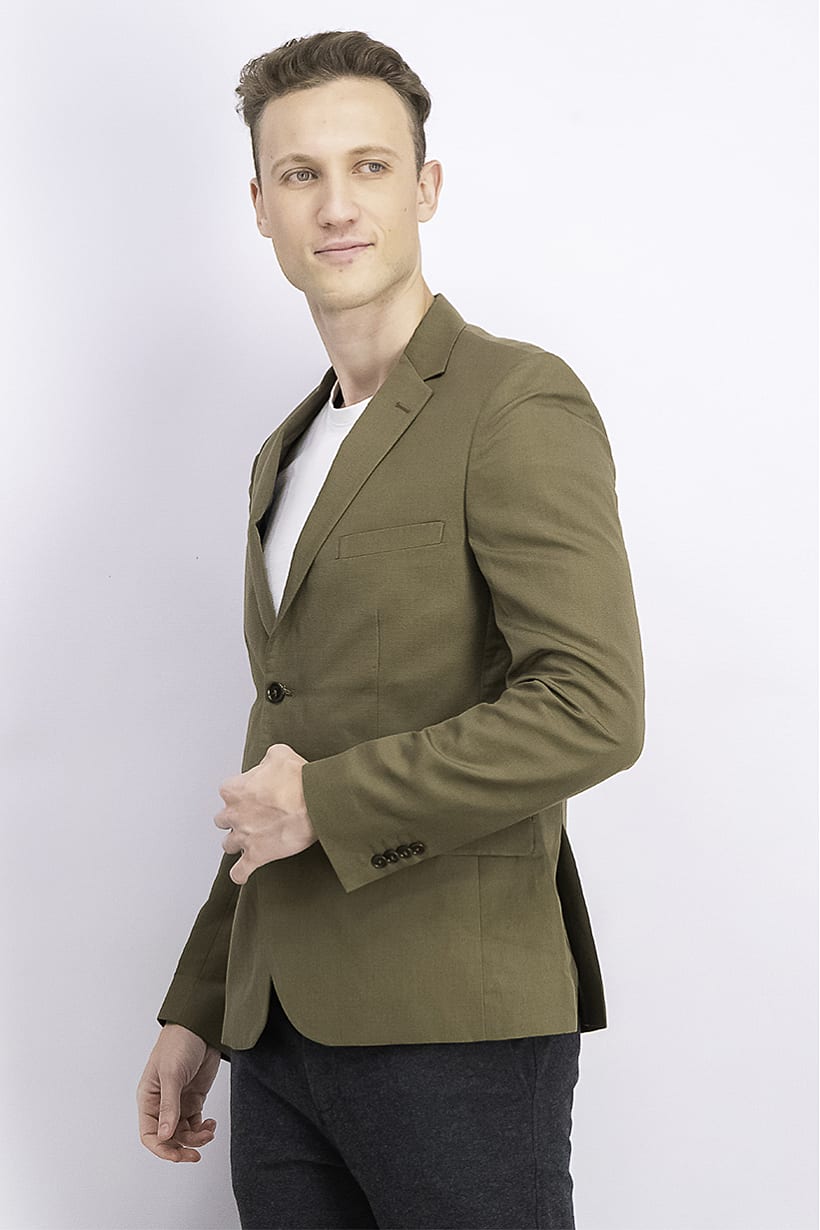 Care : Machine washable, Fit : Regular fit, Size shown : Inches, Suit Type : Suit Jackets, Type of Neckline & Collar : V-neckline , Disclaimer : Product color may slightly vary due to photographic lighting sources or your monitor settings., Fabrics : 50% Lyocell, 50% Linen, Pattern & Print : Plain/Solid, Color Family : Olive, Occasion : Formal,