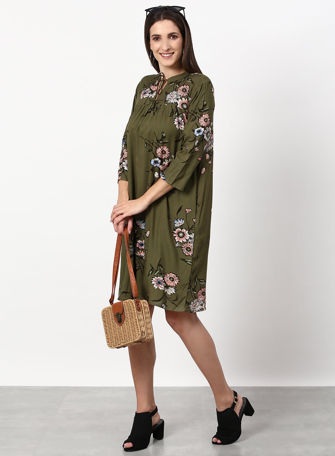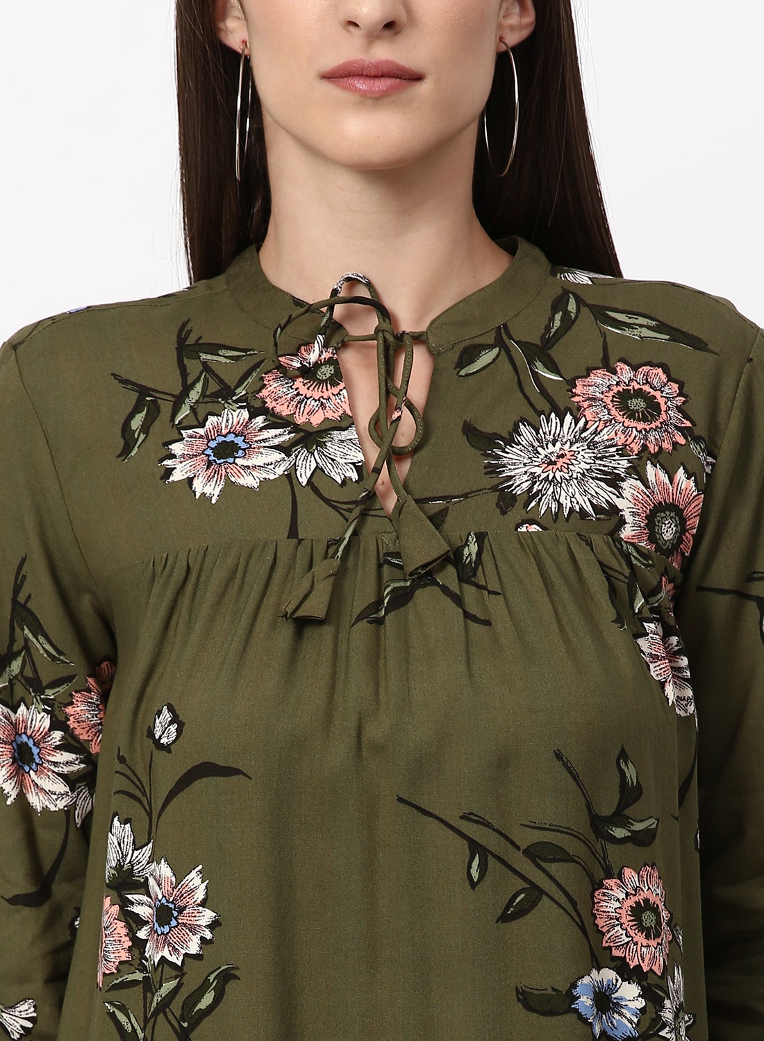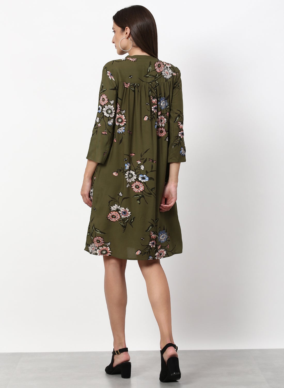 | nameOriginal | Floral Pattern Loose Fit Casual Tunic Mini Dress Olive |