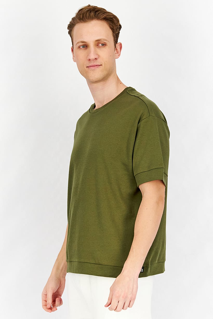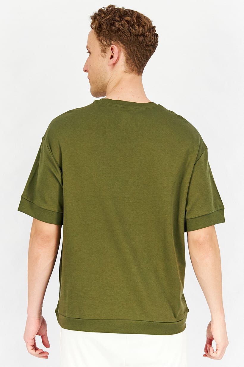 Care : Machine washable, Fit : Sportswear Fit, Size shown : International, Thickness : Light, Type of Sport : Training, Disclaimer : Product color may slightly vary due to photographic lighting sources or your monitor settings., Fabrics : 100% Cotton, Occasion : Sport, Pattern & Print : Plain/Solid, Sportswear Type : T-Shirt, Types of Closures : Pullover, Color Family : Olive,