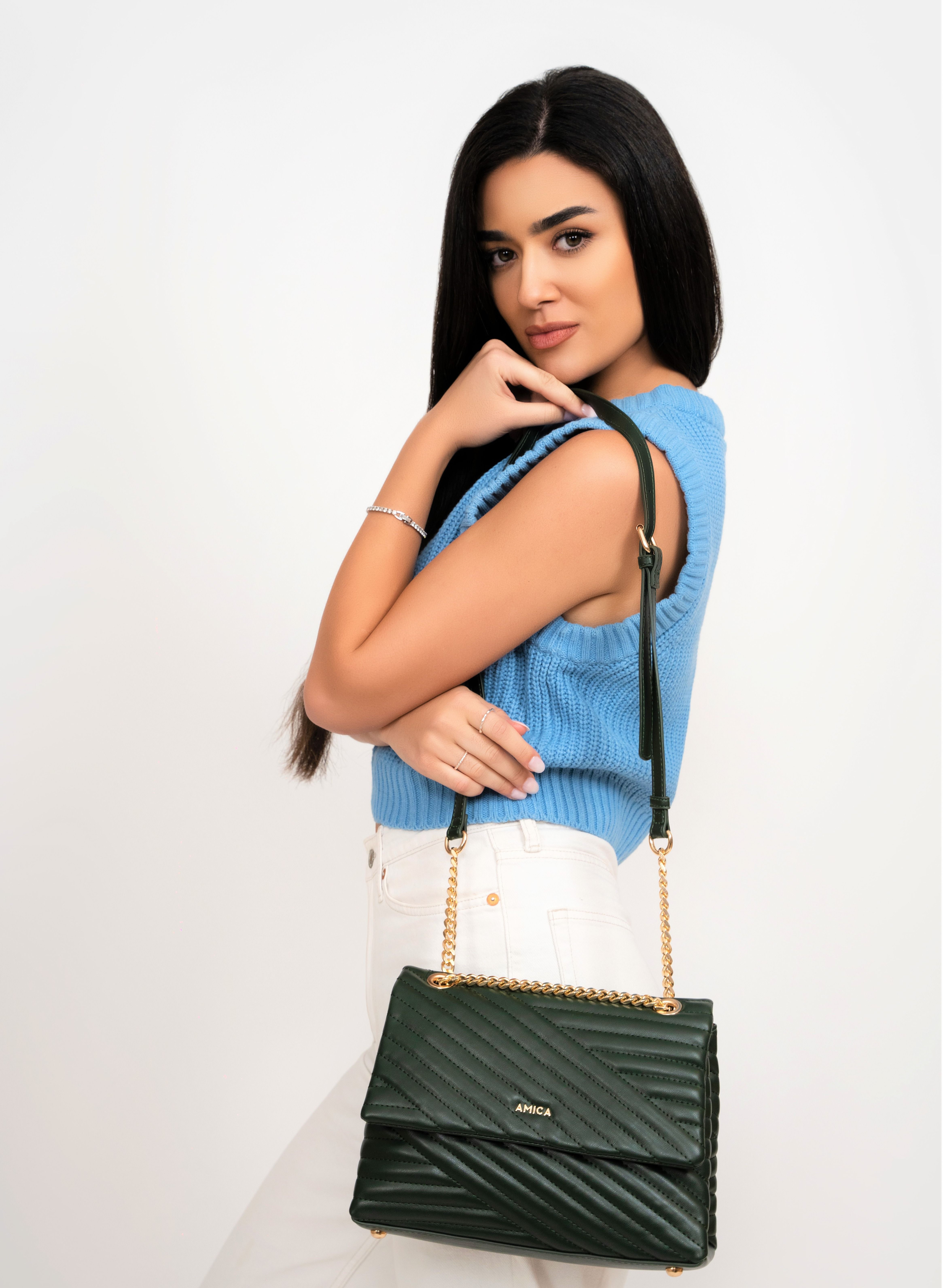 Introducing the Nata Quilted Crossbody Bag in Olive Green, the perfect accessory for any fashion-forward individual. This stylish bag is designed with a quilted pattern that adds a touch of elegance to your outfit. The olive green color is versatile and can be paired with a variety of outfits, making it a great addition to your wardrobe.