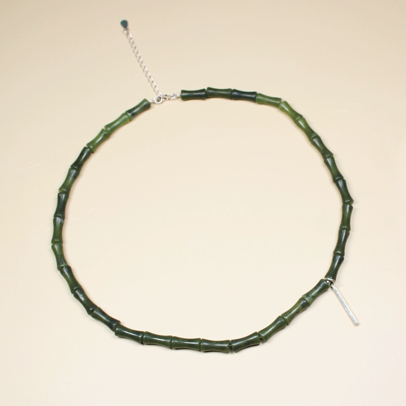 | nameOriginal | Olive Jade Clavicle Chain Natural Jade Bamboo Necklace Simple Original Design French Sterling Silver Necklace Versatile Women's Style |