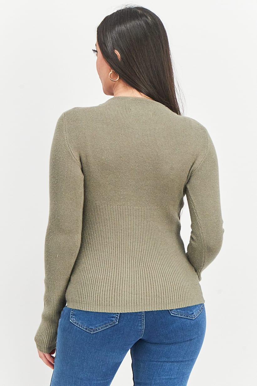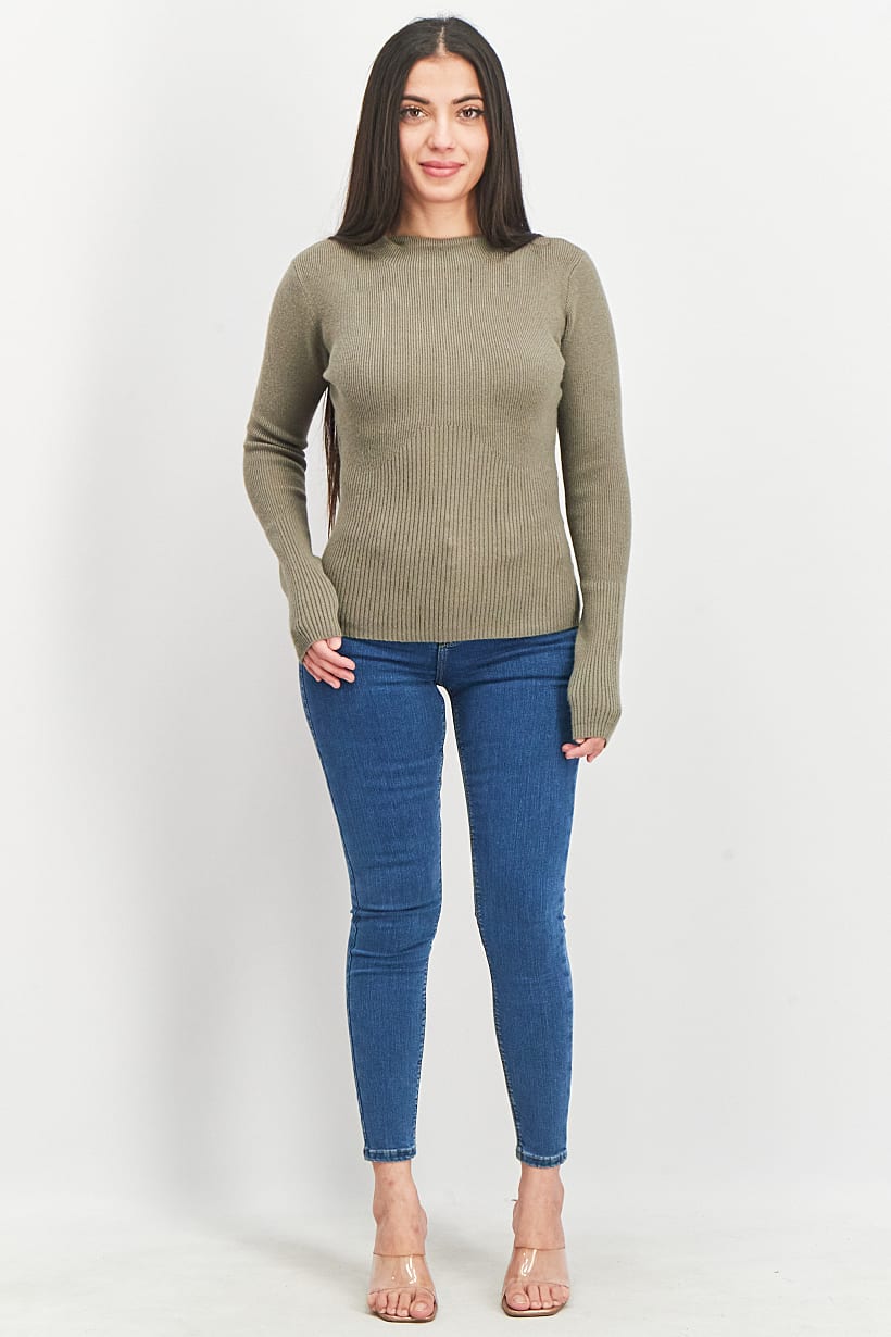 | nameOriginal | Women Crew Neck Knitted Sweater, Olive |