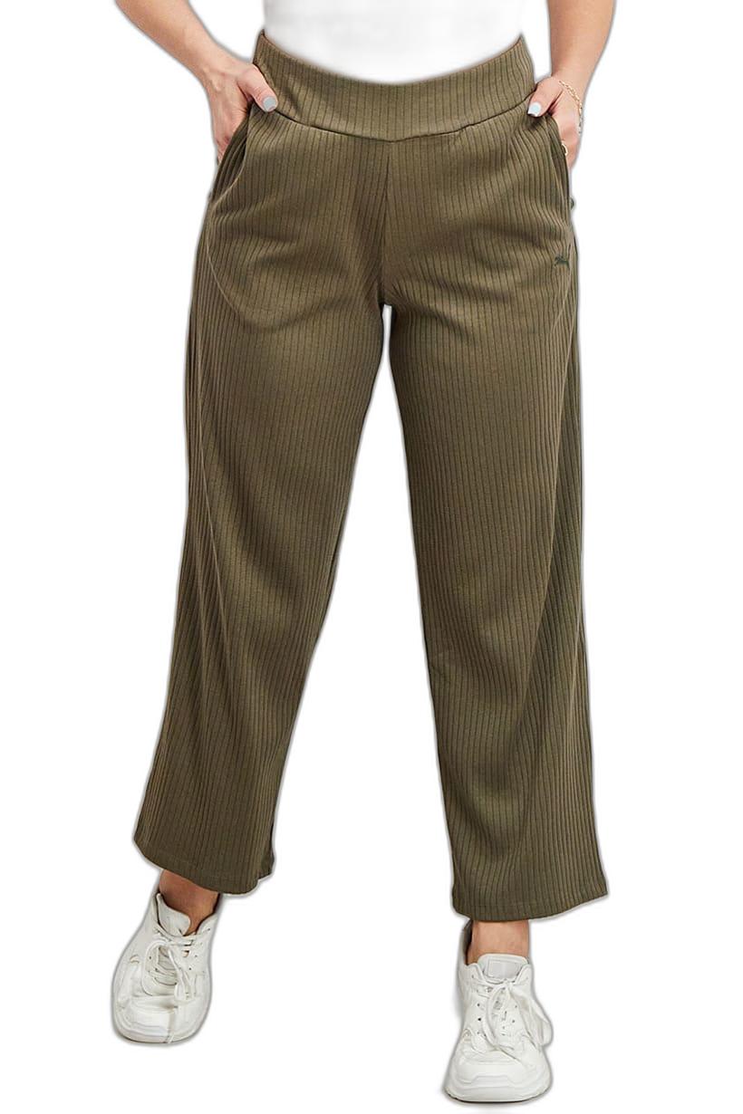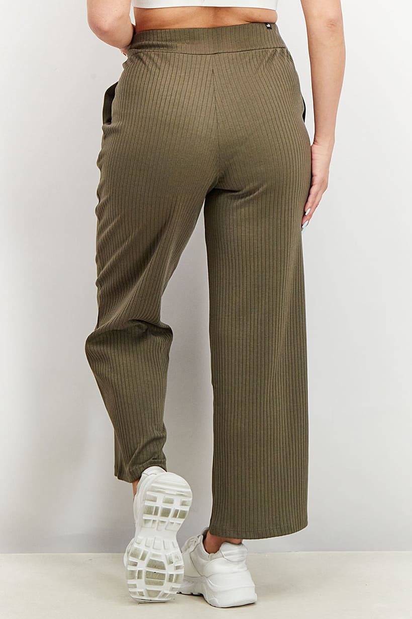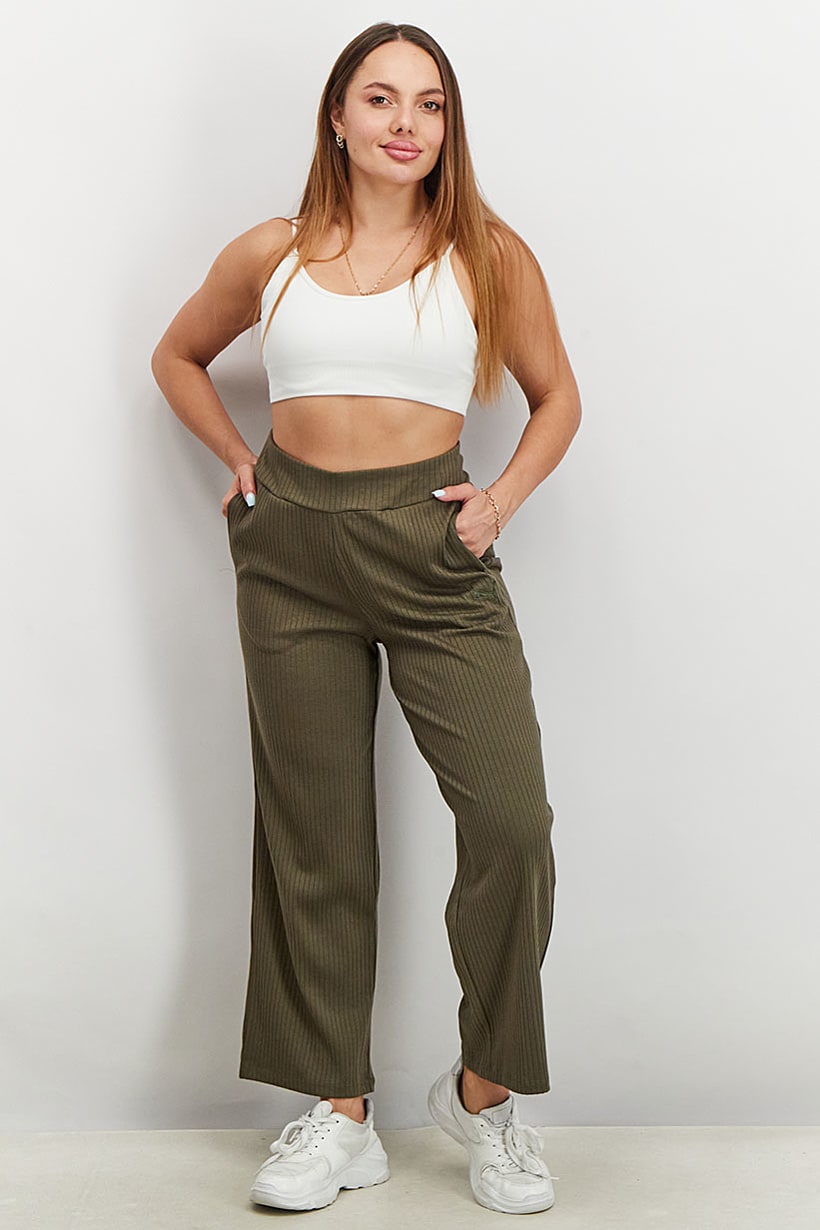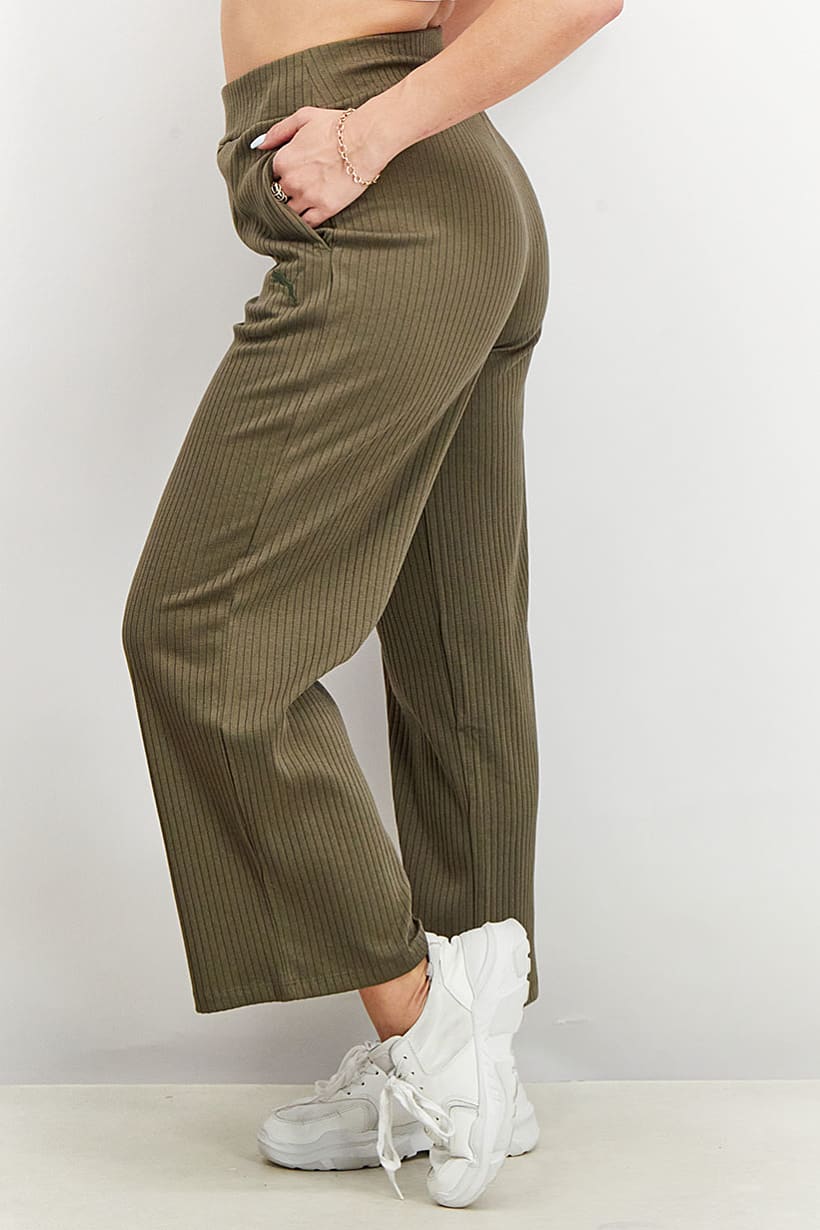 Olive Ribbed Wide Leg Pants for Women’s Outdoor Wear.