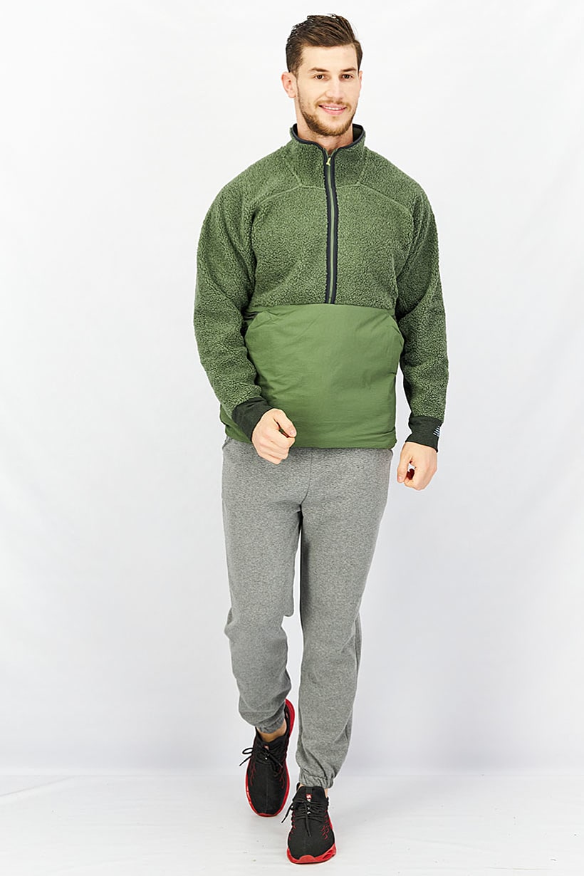 Olive Sherpa Fleece Anorak Jacket for Men with Athletic Fit.