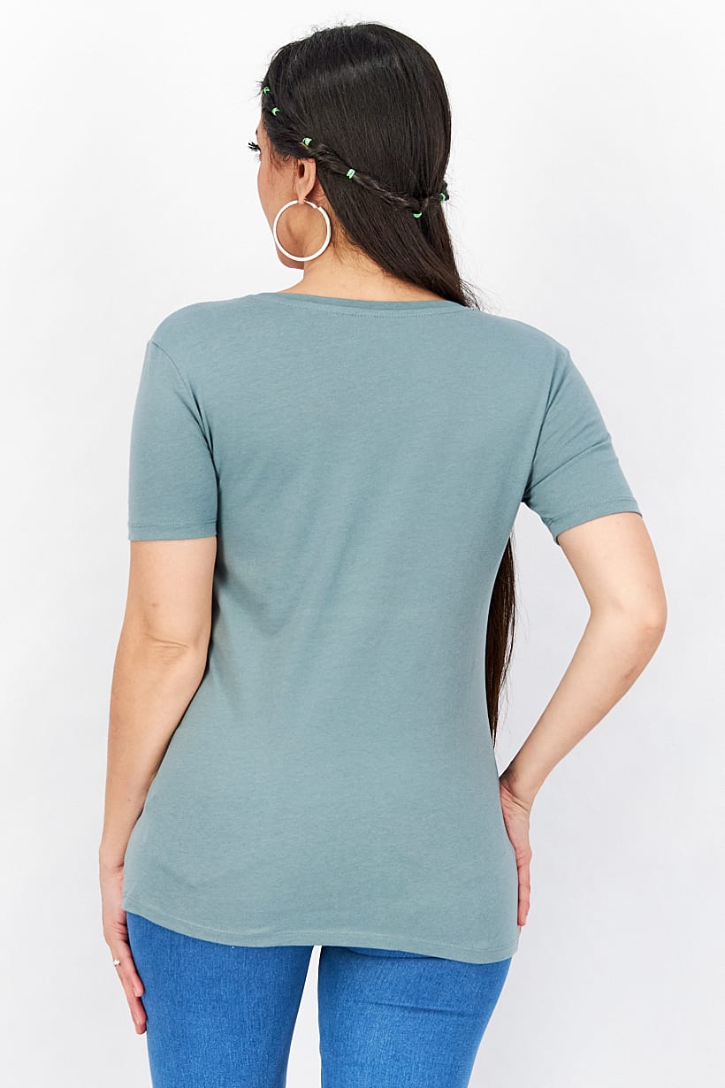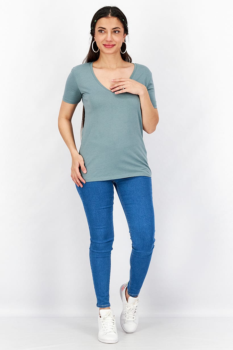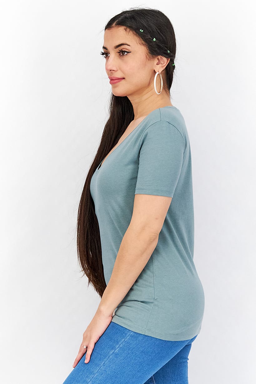 | nameOriginal | Women V-neck Short Sleeve Plain Top, Olive |