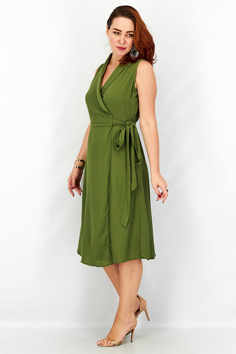 | nameOriginal | Women Sleeveless Plain Wrap Dress, Olive |