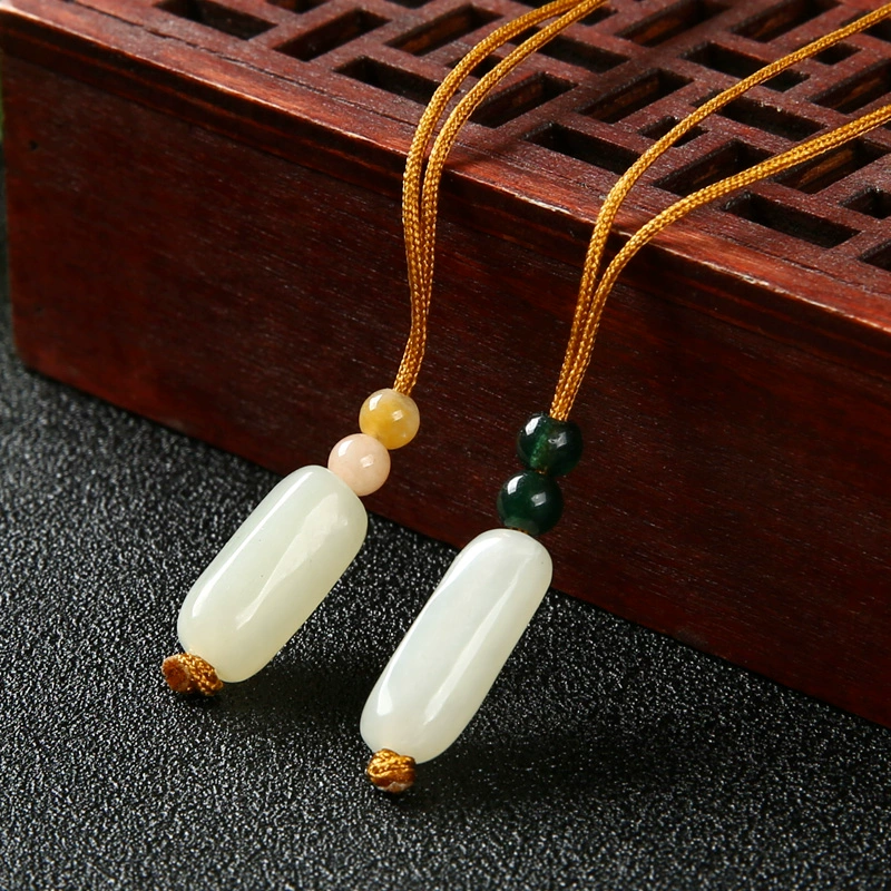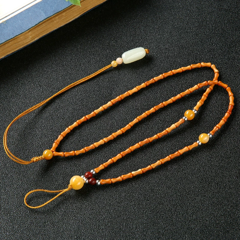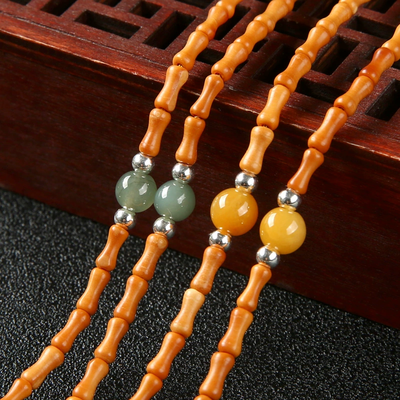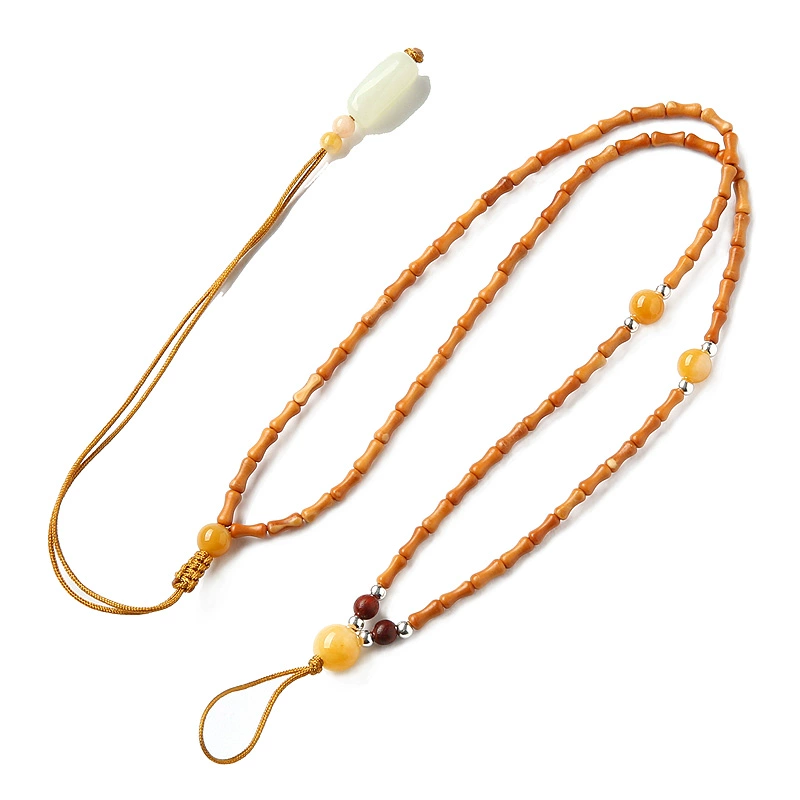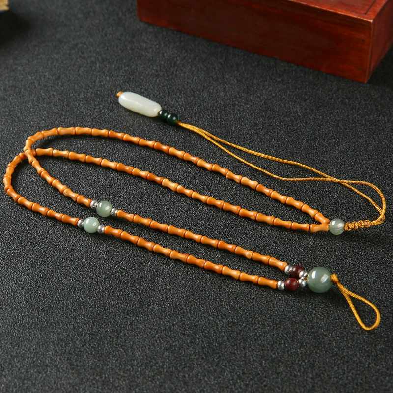 | nameOriginal | Olive stone small bamboo necklace pendant with rope and chain jade beeswax lanyard adjustable sweater chain necklace rope |