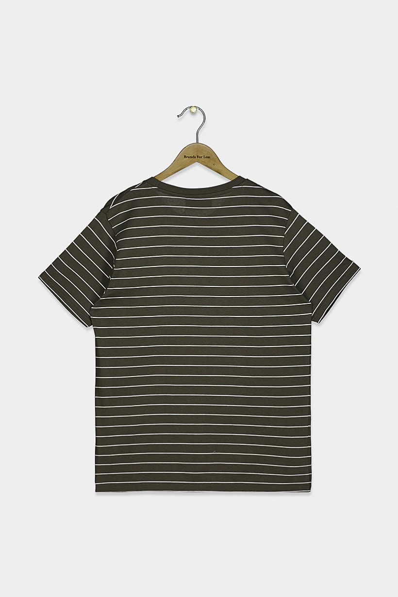 Care : Machine washable, Ideal For : Boys, Sleeve Length : Short Sleeve, Type of Hem : Straight hem , Type of Neckline & Collar : Round neckline , Disclaimer : Product color may slightly vary due to photographic lighting sources or your monitor settings., Fabrics : 100% Cotton, Occasion : Casual, Pattern & Print : Stripe, Type of Sleeve : Short sleeve , Types of Closures : Pullover, Color Family : Olive,