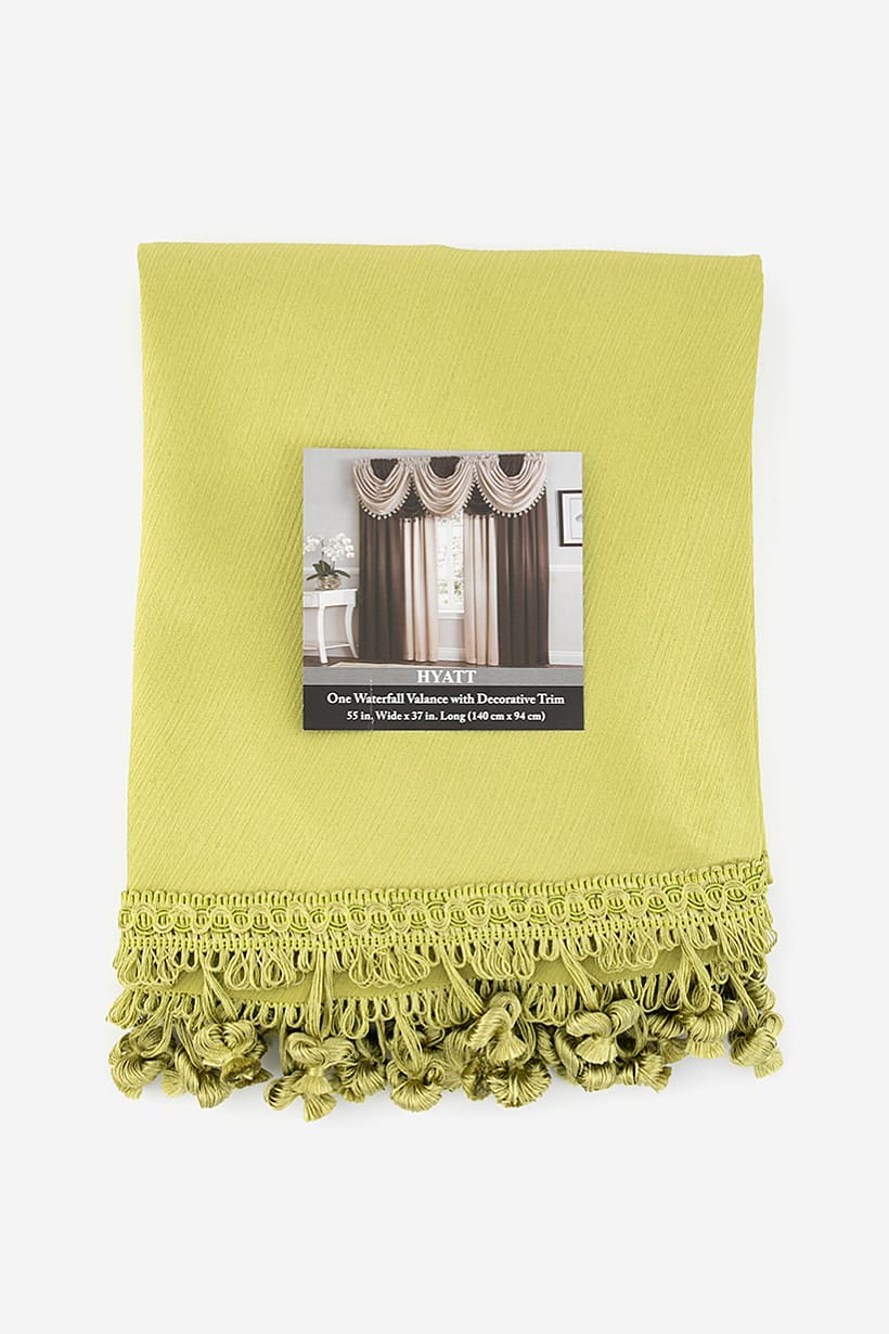 | nameOriginal | One Waterfall Valance With Decorative Trim, Olive |