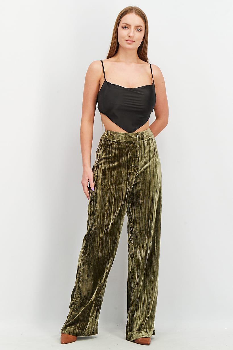 | sub_Categories | Women Clothing, Pants, women wide leg velvet trouser pants olive |