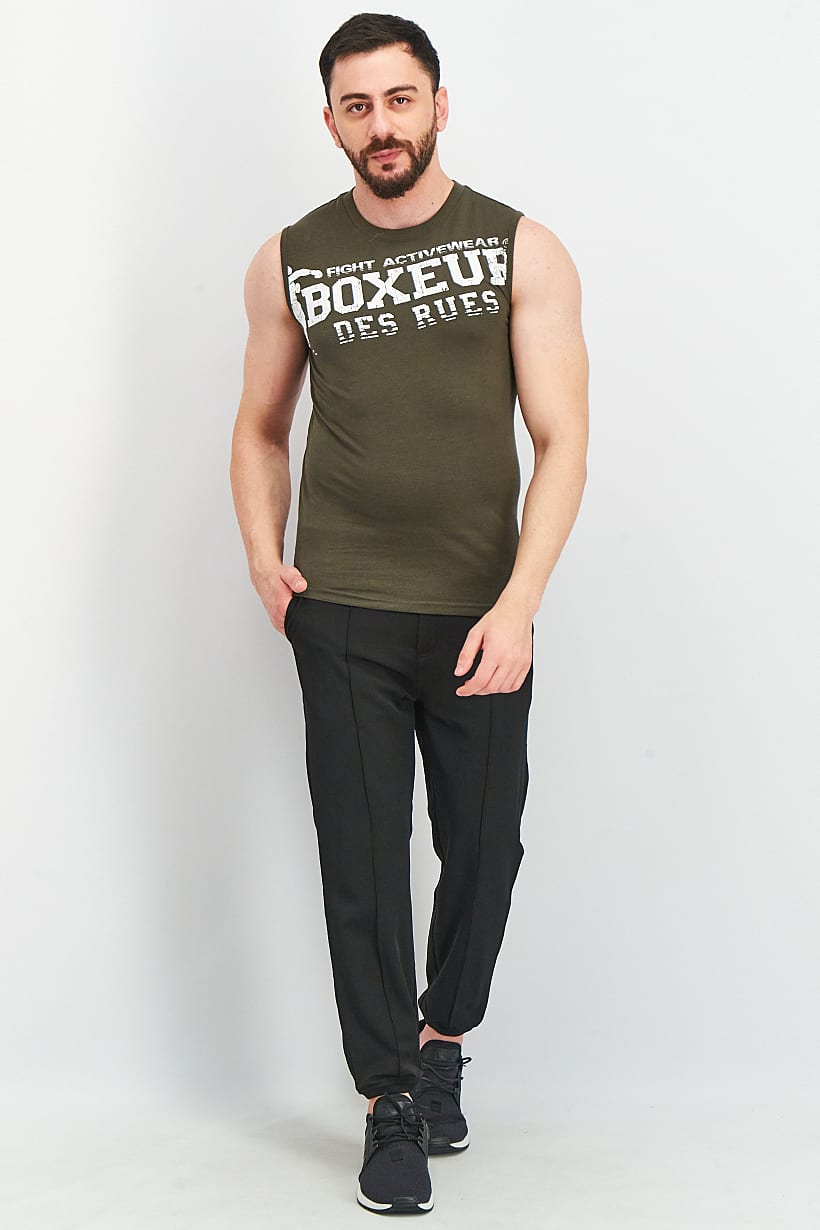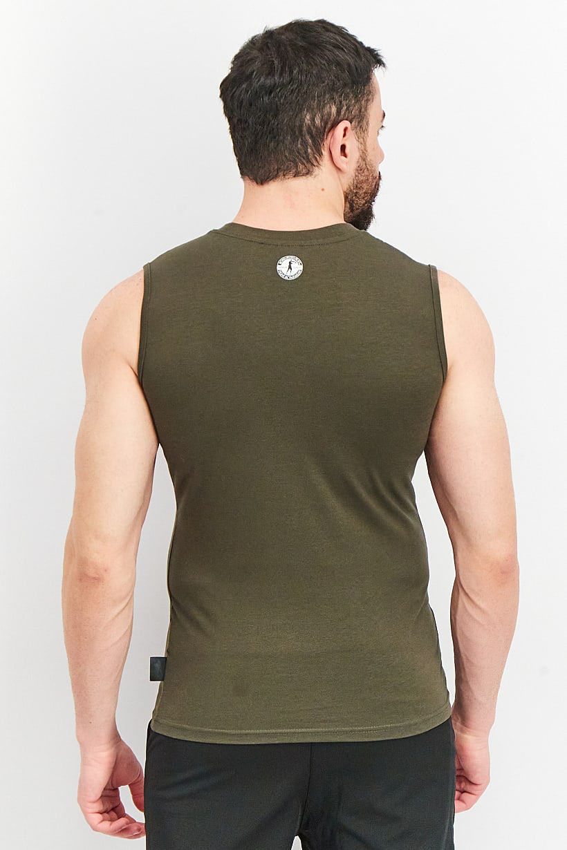 | sub_Categories | Men Clothing, Sportswear, men sportswear fit sleeveless brand logo tank top olive white |