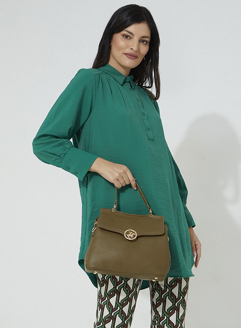 Whether you’re running errands, going to work, or heading out for a night on the town, the Women’s Satchel Bag in Olive is the perfect accessory to complete your look.