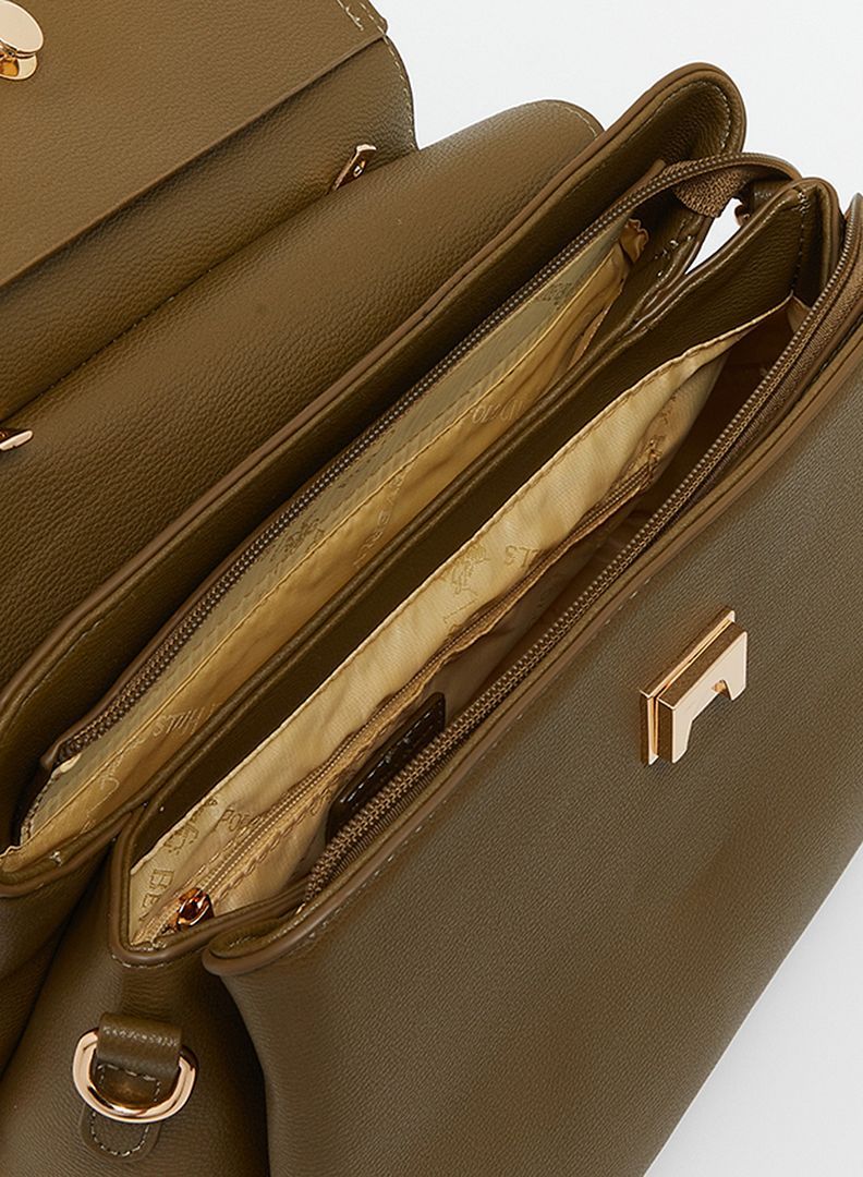 The Women’s Satchel Bag in Olive also comes with an adjustable shoulder strap, allowing you to wear it comfortably on your shoulder or across your body. The gold-tone hardware adds a touch of elegance to the bag, making it a stylish accessory that will complement any outfit.