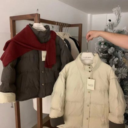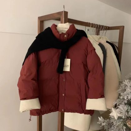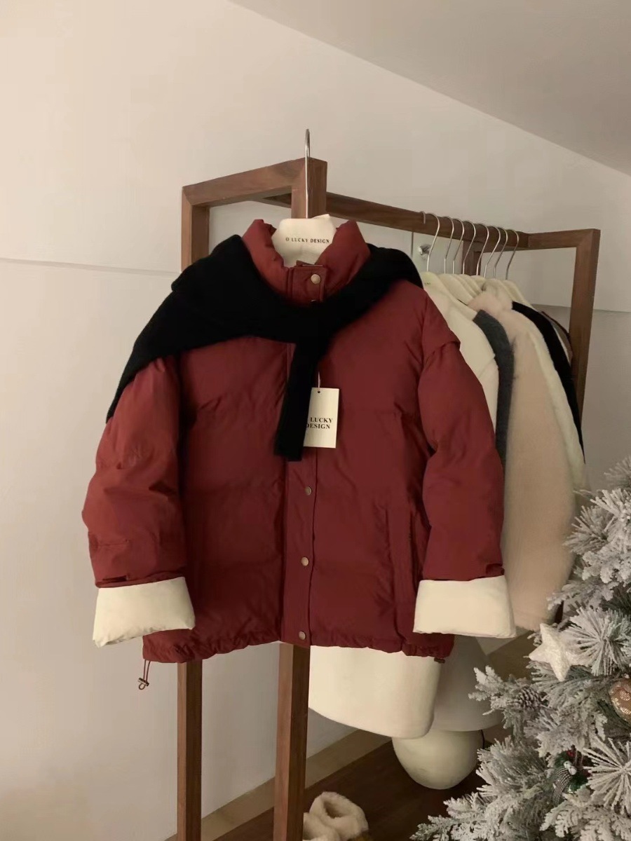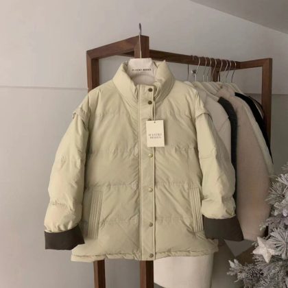 | nameOriginal | OLUCKY color matching stand collar down jacket for women 2023 new Korean style loose fashion simple niche white duck down jacket |