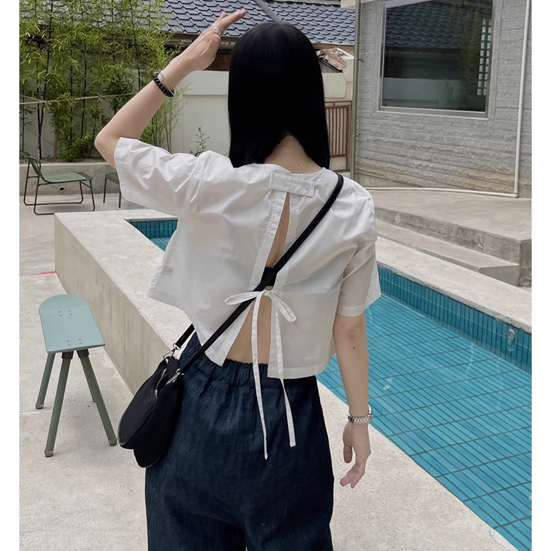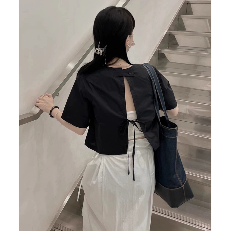 Omni Korean ins lace-up loose short-sleeved top