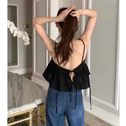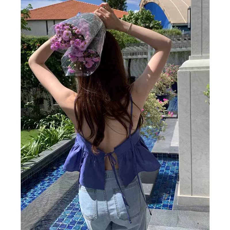 | nameOriginal | Omni Korean ins solid color halter top with hollow back |