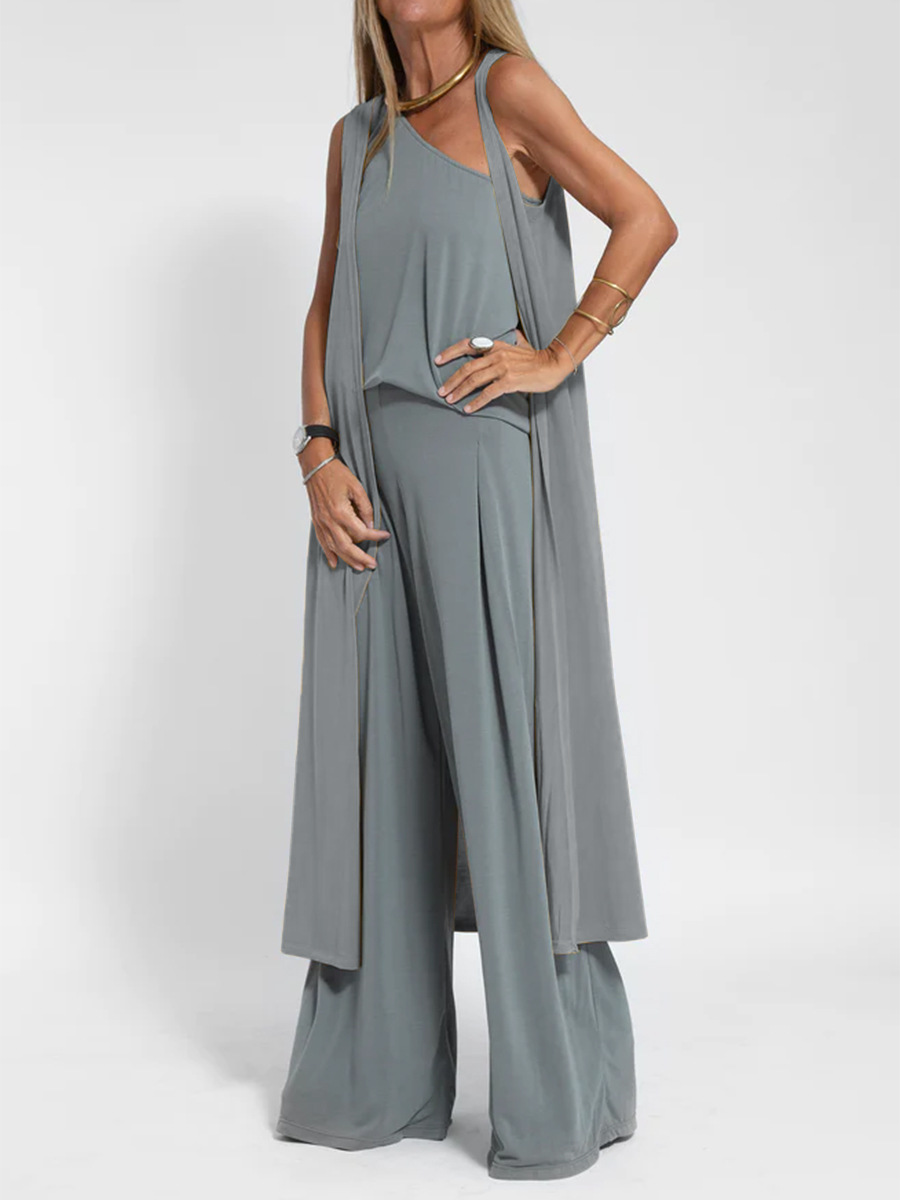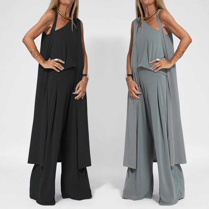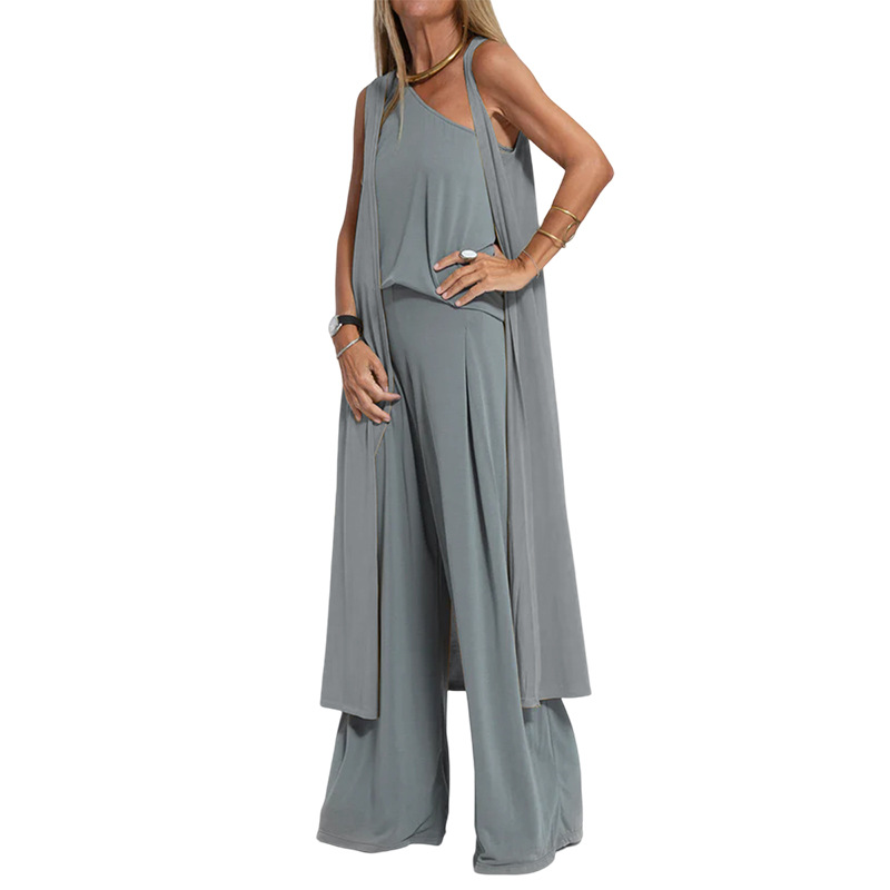 | nameOriginal | ON01229 large size spot European and American autumn and spring new women's home clothes T-shirt cardigan casual wide leg pants three-piece set |