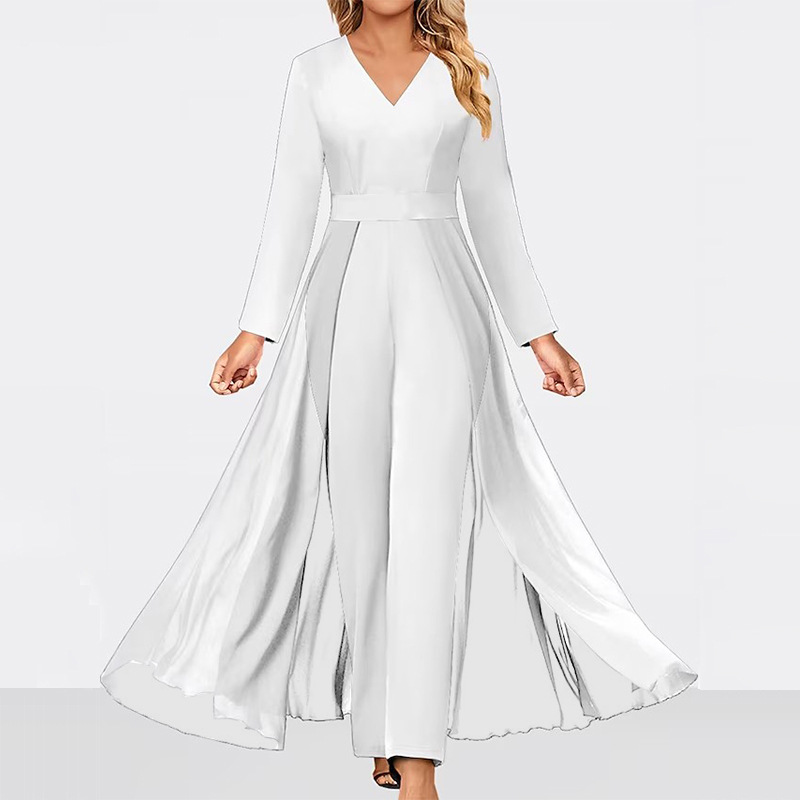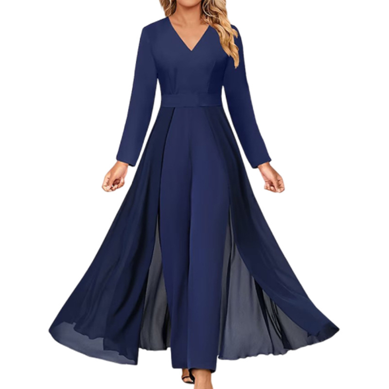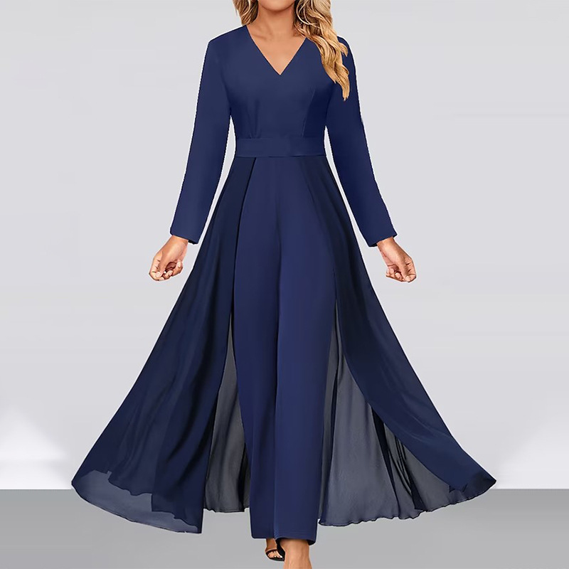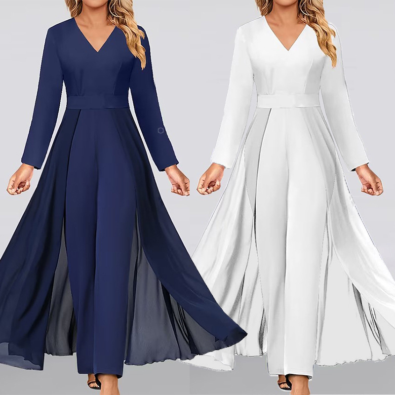 | nameOriginal | ON01331 in stock 2024 autumn and winter cross-border new women's clothing solid color chiffon V-neck fashion stitching jumpsuit |