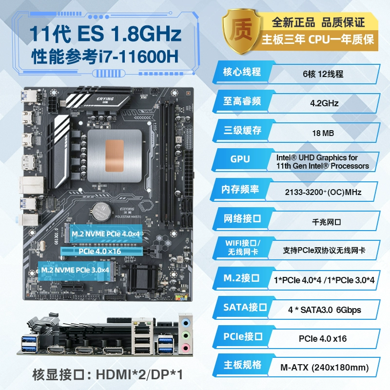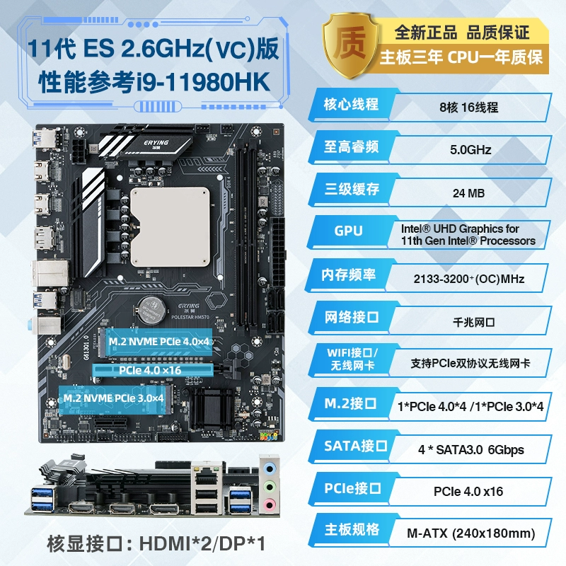 Onboard CPU set ES processor 2.6GHz/2.2/1.8 11th generation Core processor motherboard DDR4