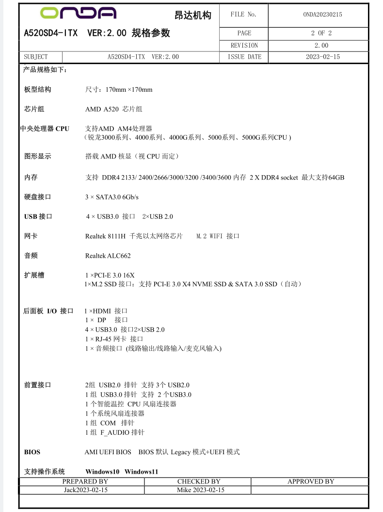 Onda B450/A520SD4-ITXmini computer desktop AMD motherboard 1/2/3/4/5 generation AM4 interface U