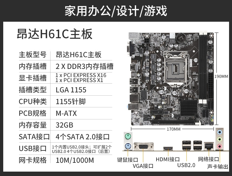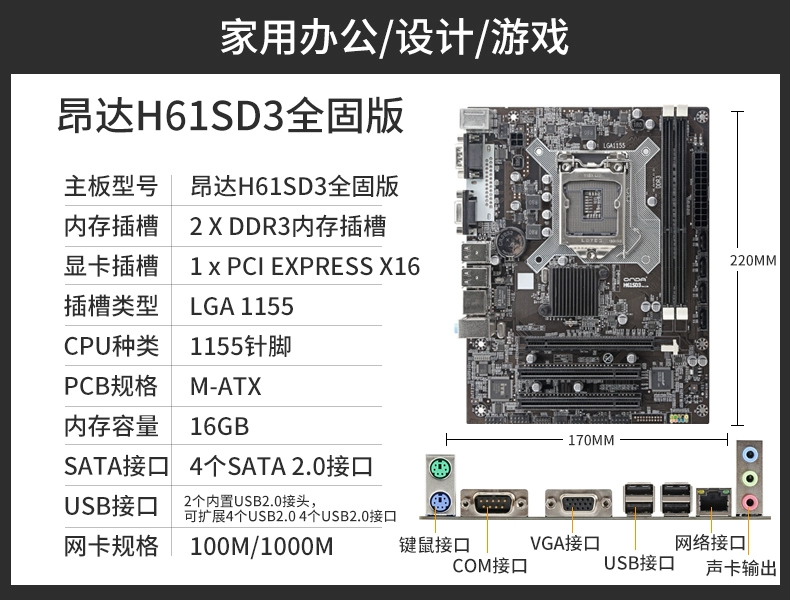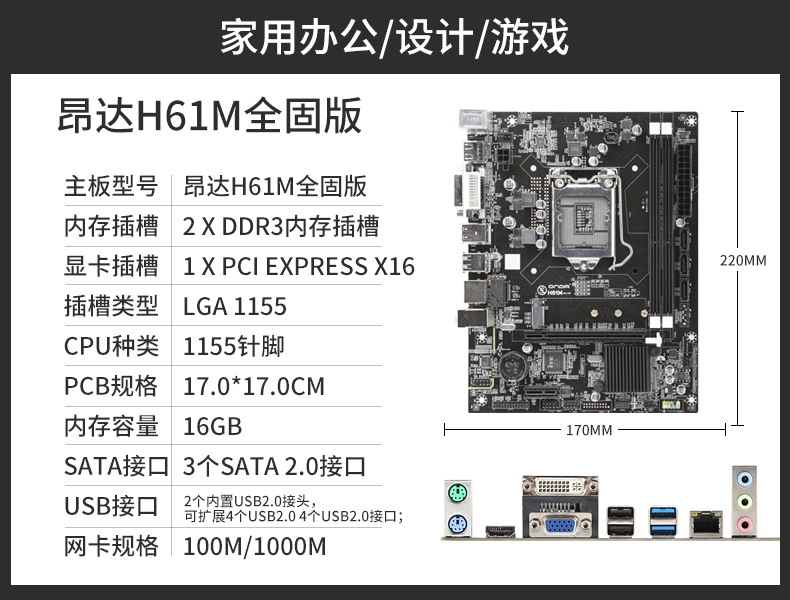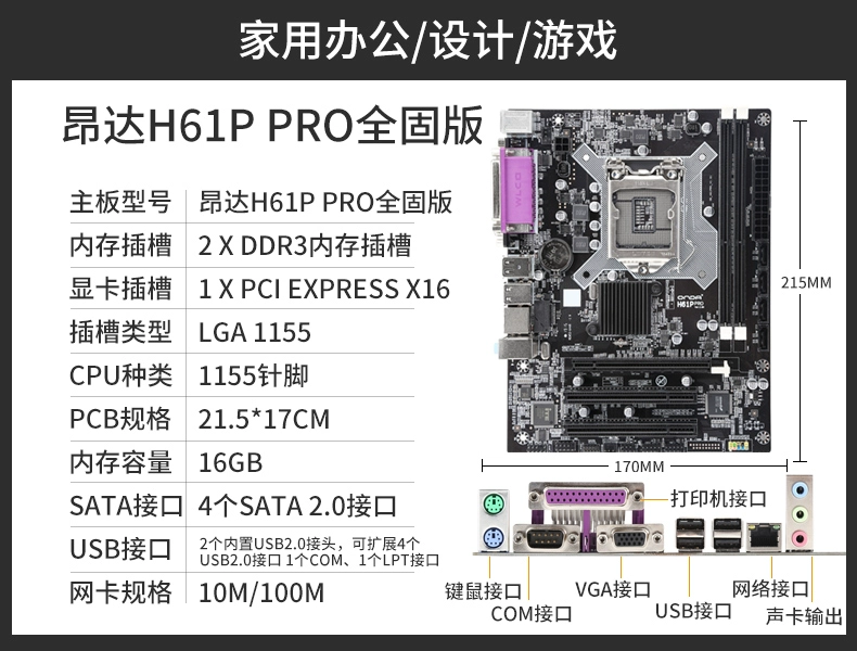 | nameOriginal | Onda H61M full solid version motherboard 1155-pin computer motherboard built-in LPT interface DDR3 dual channel 3-phase power supply |